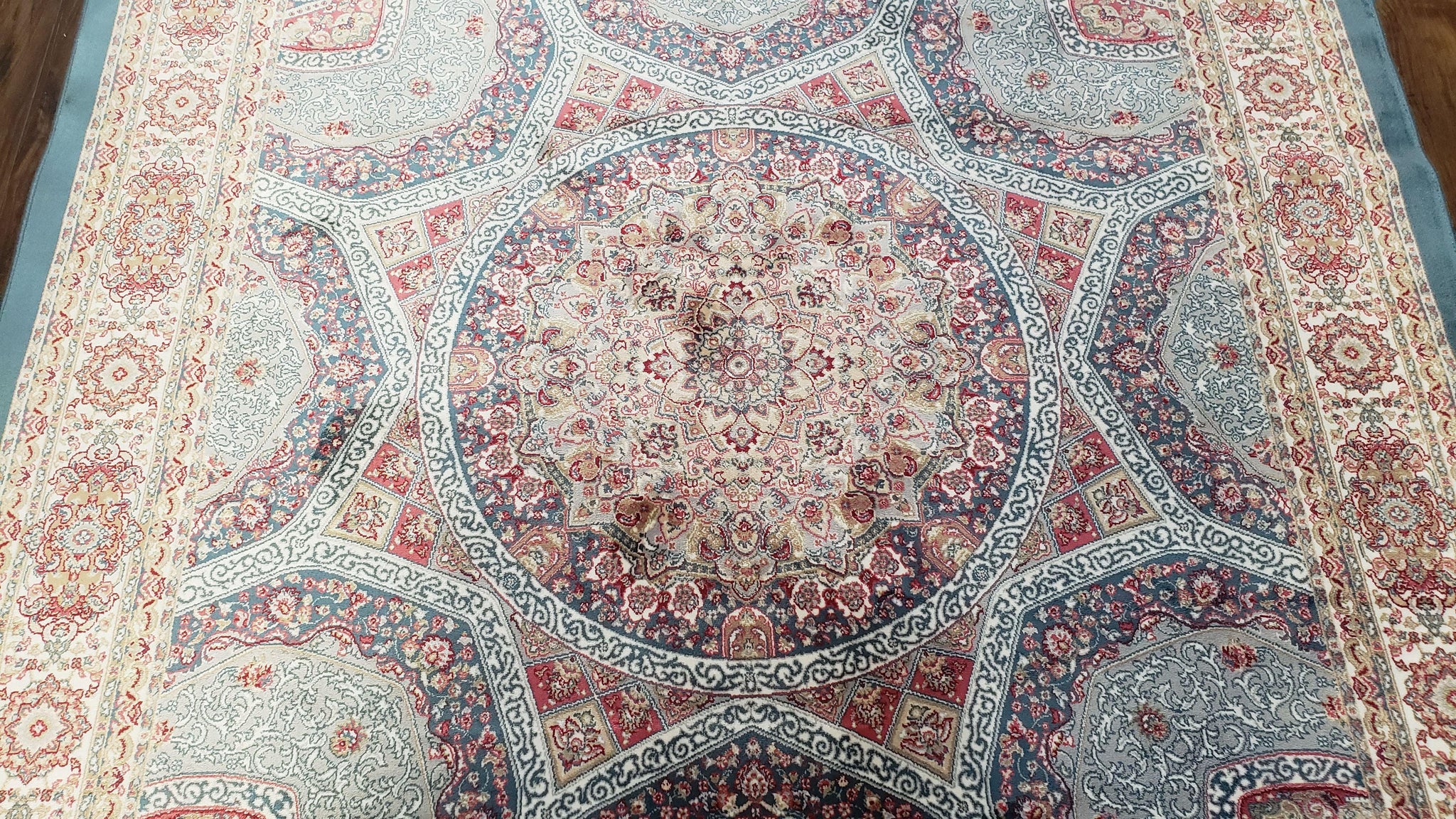 4x6 Silk Carpet, Light Blue & Beige Oriental Rug 4 x 6ft, Traditional Design Medallion All Over, Bamboo Silk, Super Fine, High Quality, Soft