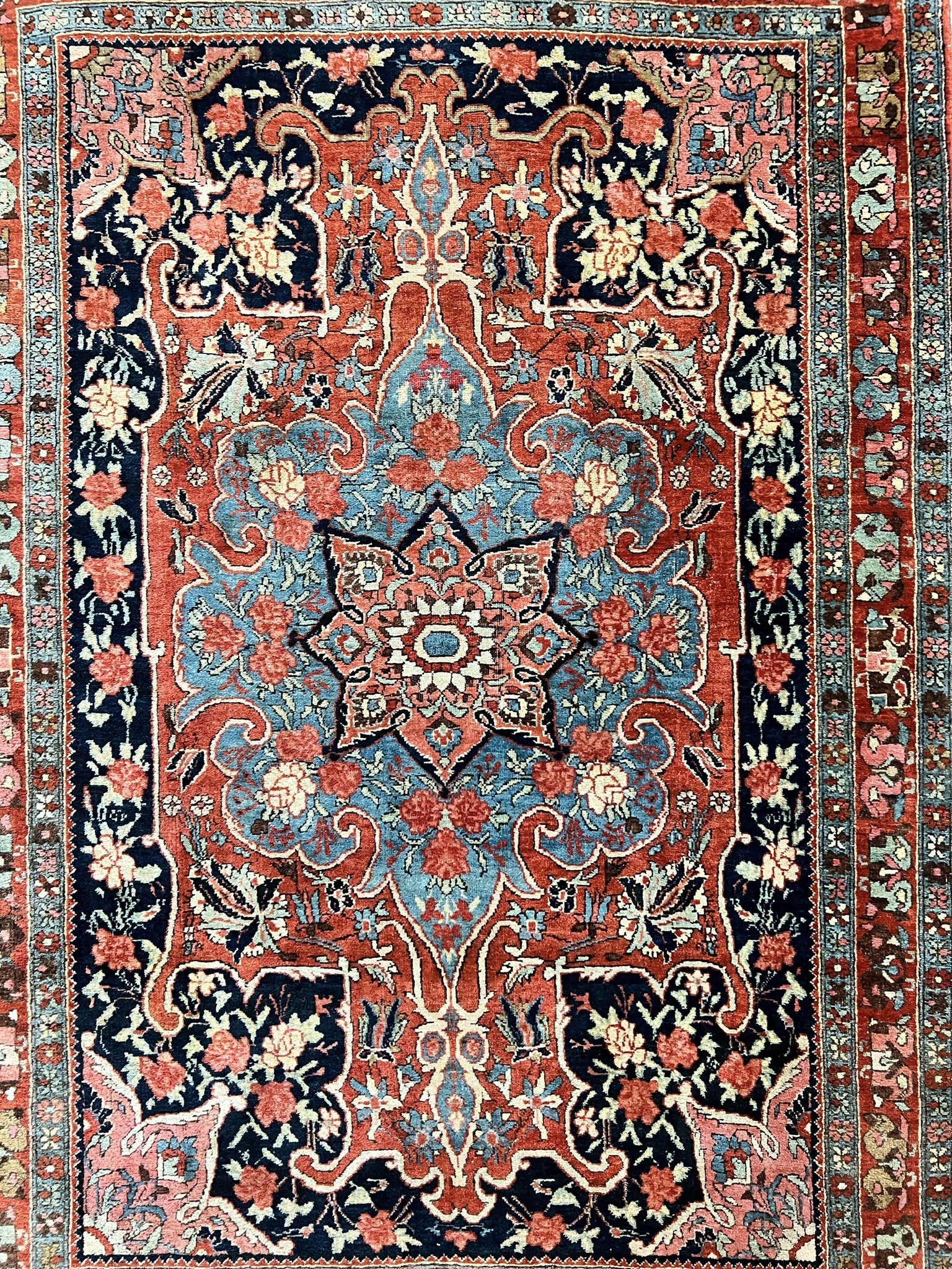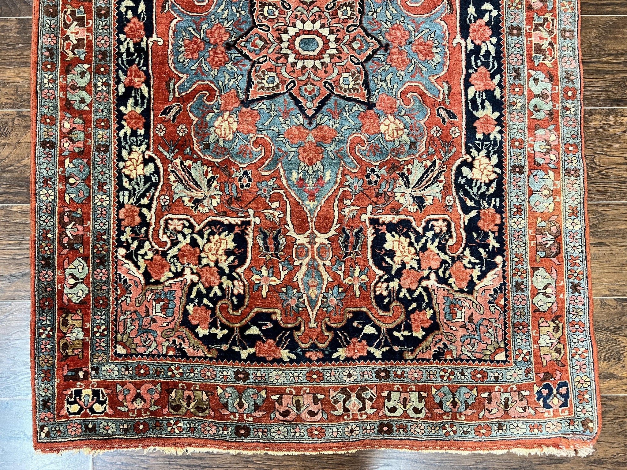 Antique Persian Bidjar Rug 4x5, Red and Blue, Hand Knotted Wool Carpet