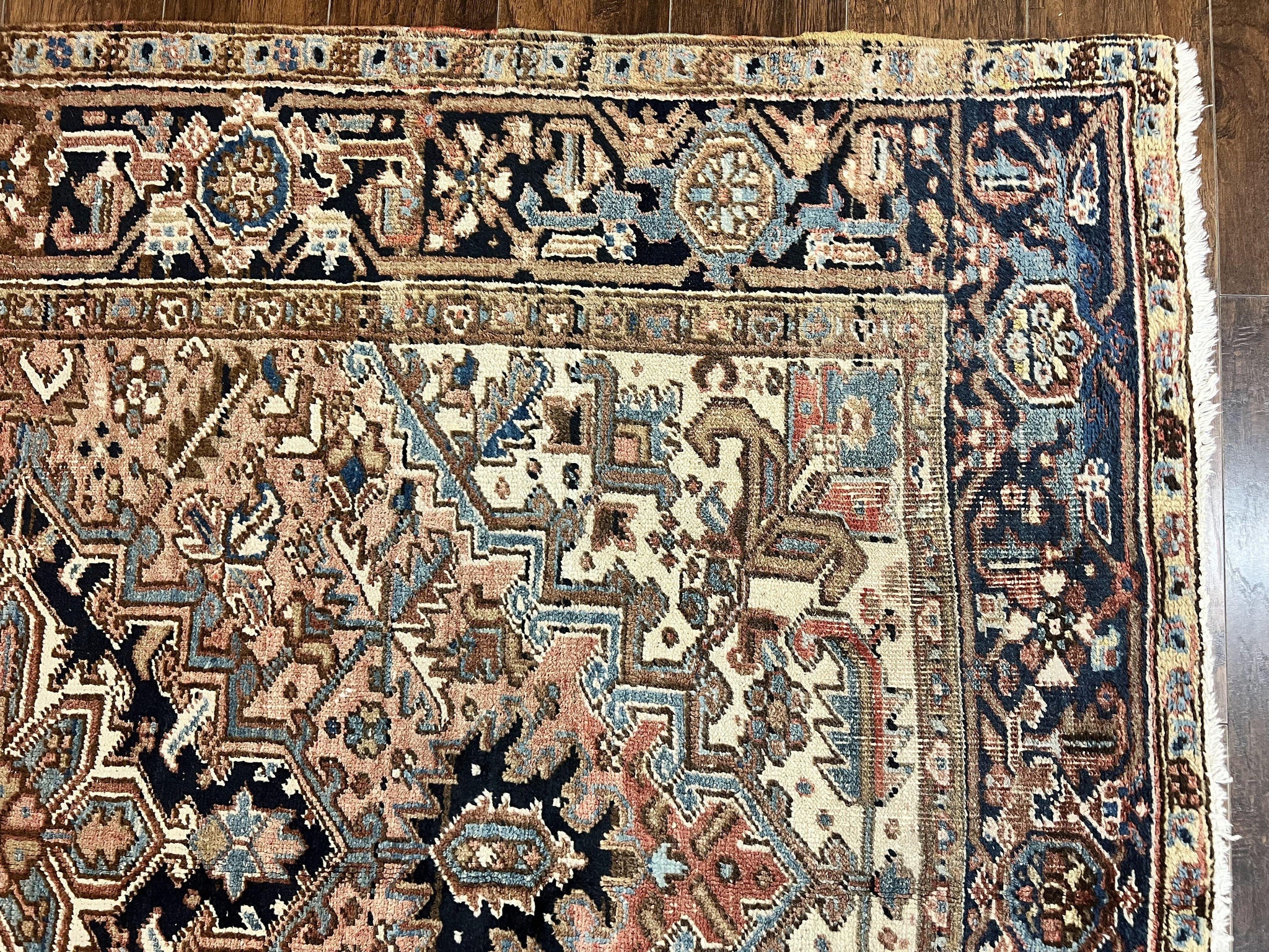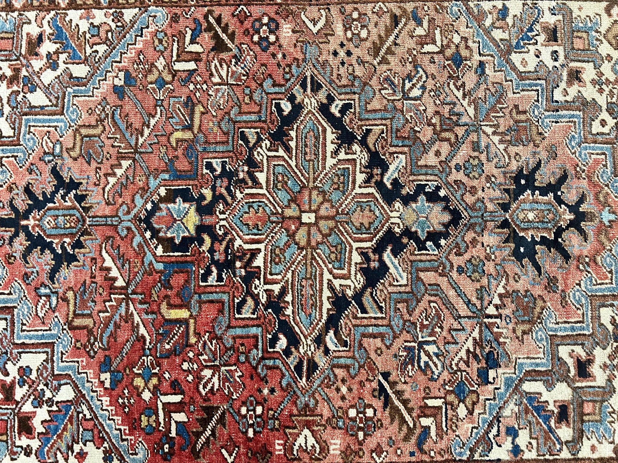 Antique Persian Heriz Rug 6x8, Geometric Medallion, 1920s Oriental Carpet, Handmade Wool Rug