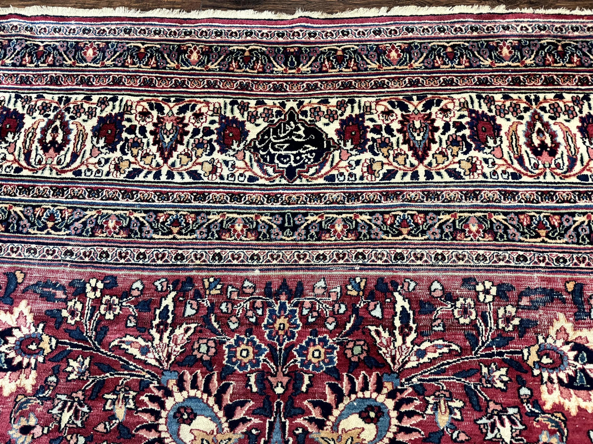 Antique Persian Mashad Rug 10x12, Red and Ivory, Signed by Master Weaver