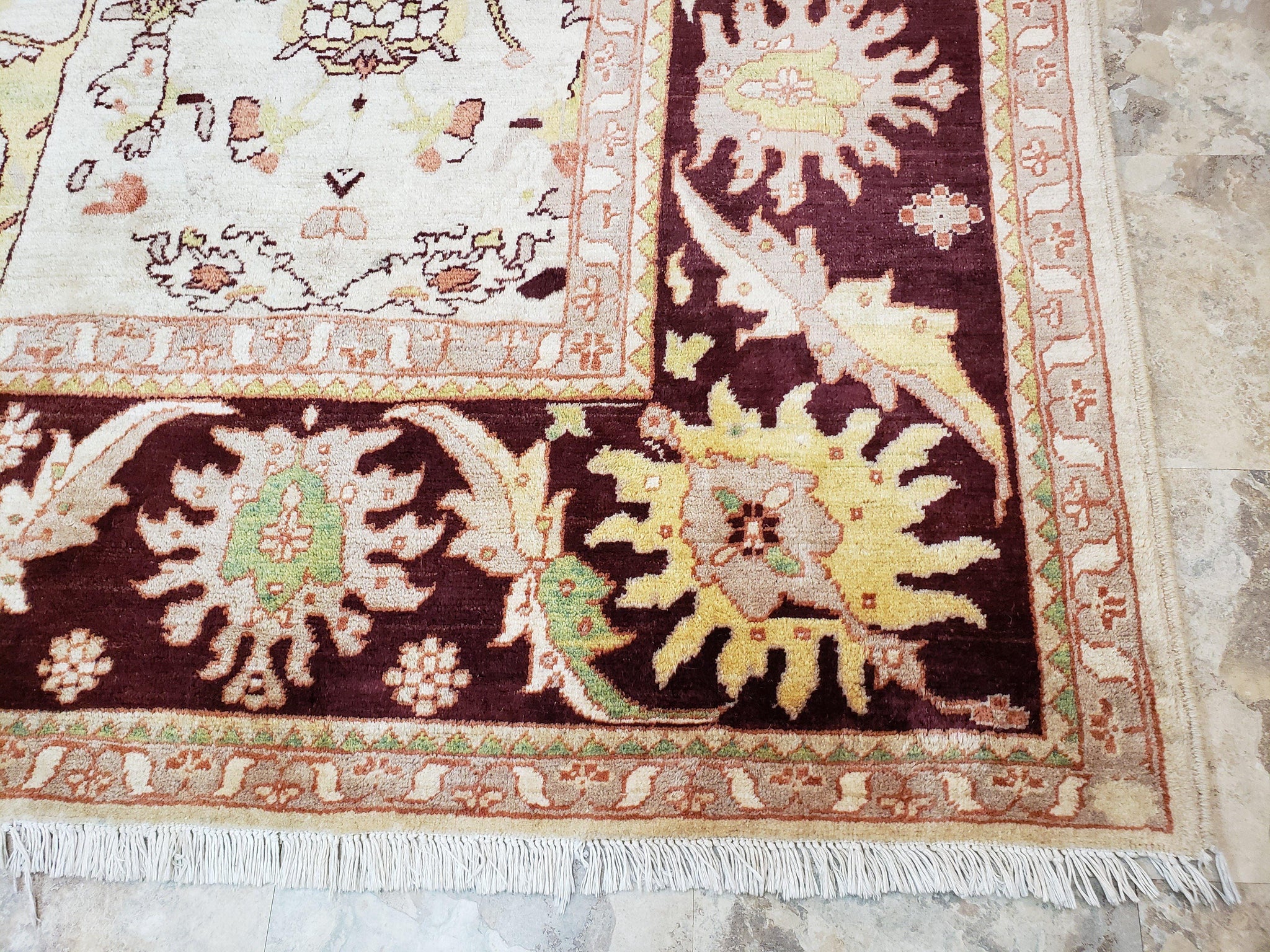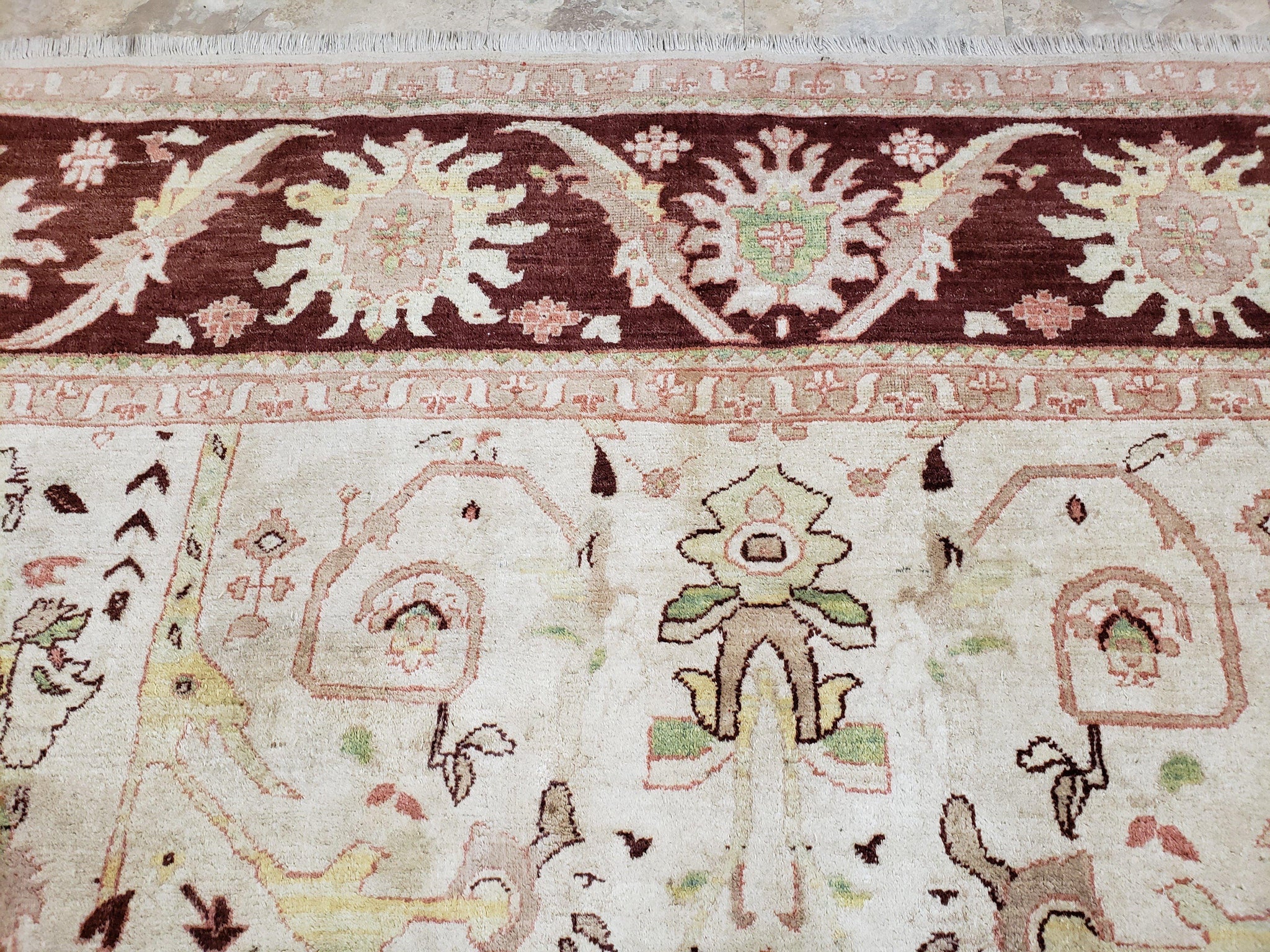 Beige and Maroon Peshawar Rug 10x15, Large Oushak Carpet, Pakistani Rug, Handmade Area Rug, Hand Knotted Rug, Living Room Rug, Nice Wool Rug