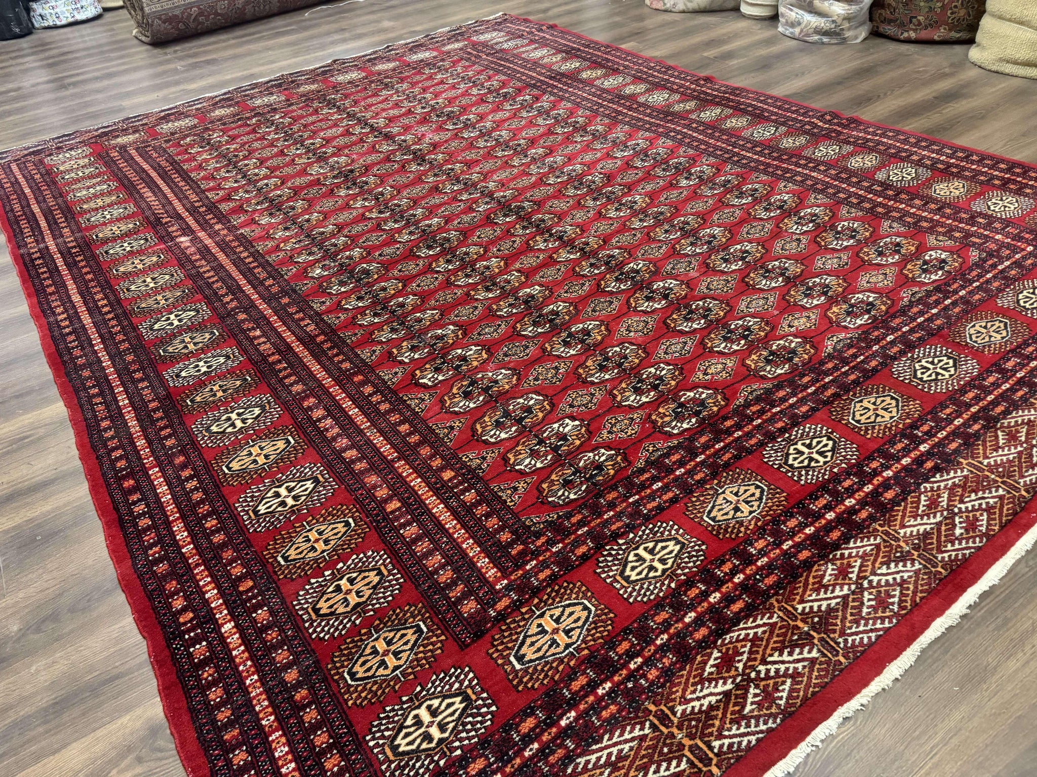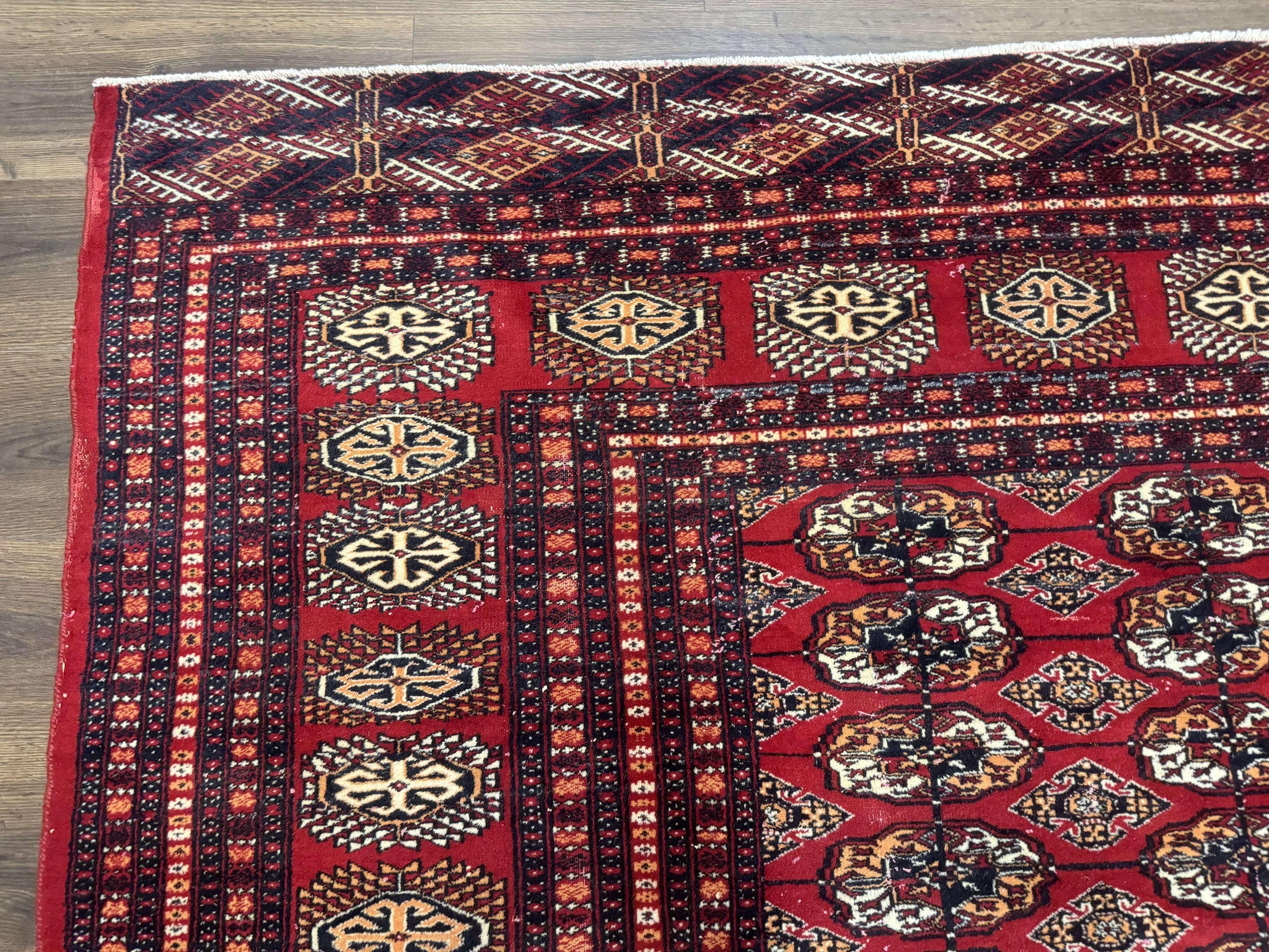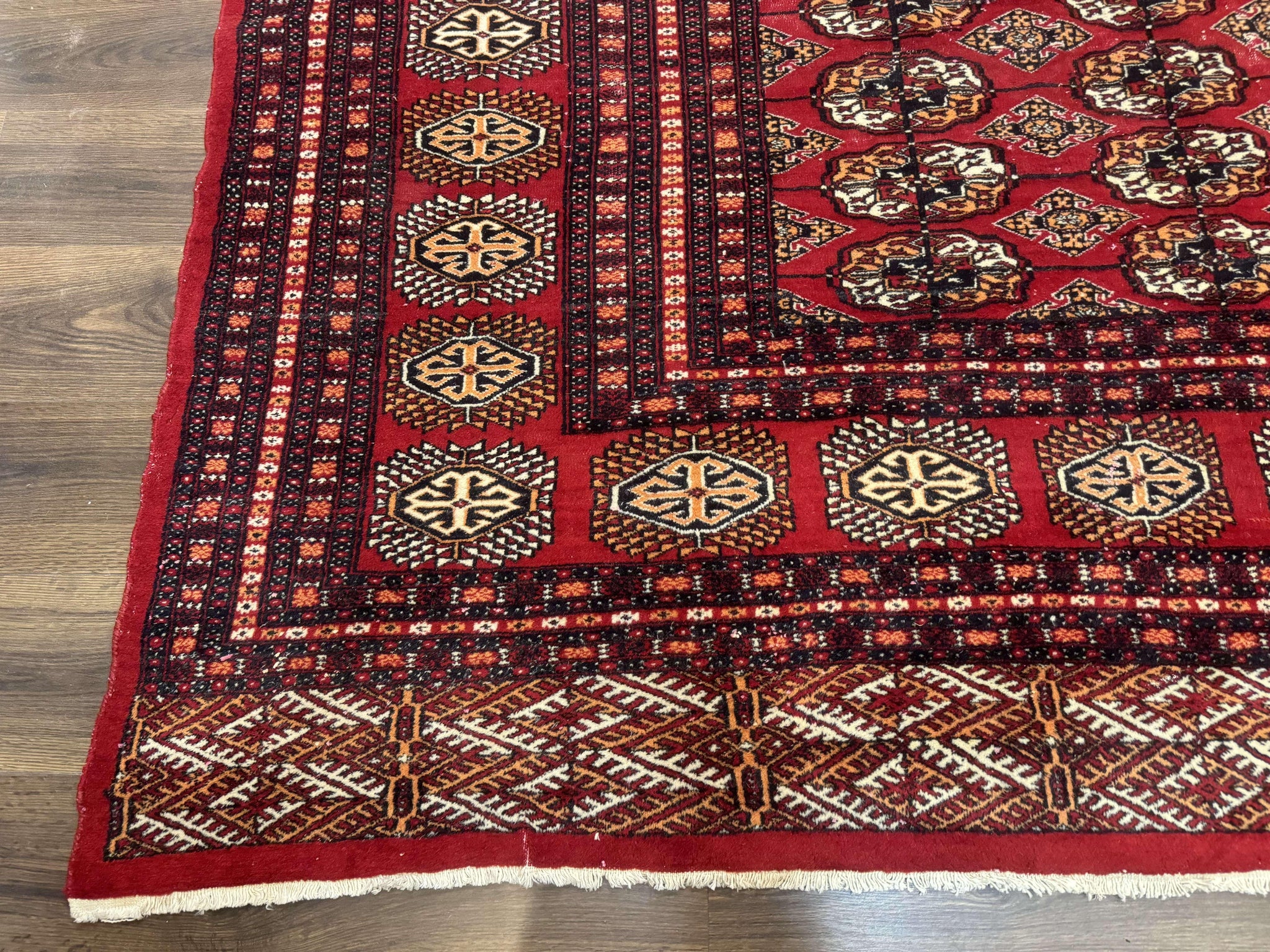 Bokhara Rug 9x12, Red Turkoman Rug, Pakistani Rug, Tribal Carpet, Wool Rug, Red Rug