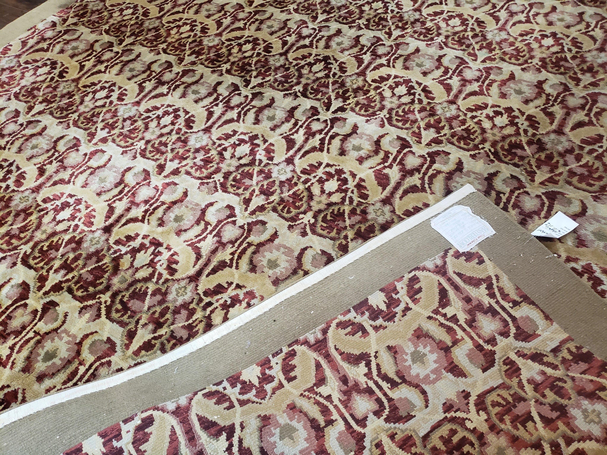 Contemporary Indian Nepalese Room Sized Rug 9 x 11.6, Wool Hand-Knotted Dark Red & Beige Soft Carpet, 9 x 12 Masterloom Living Room Rug