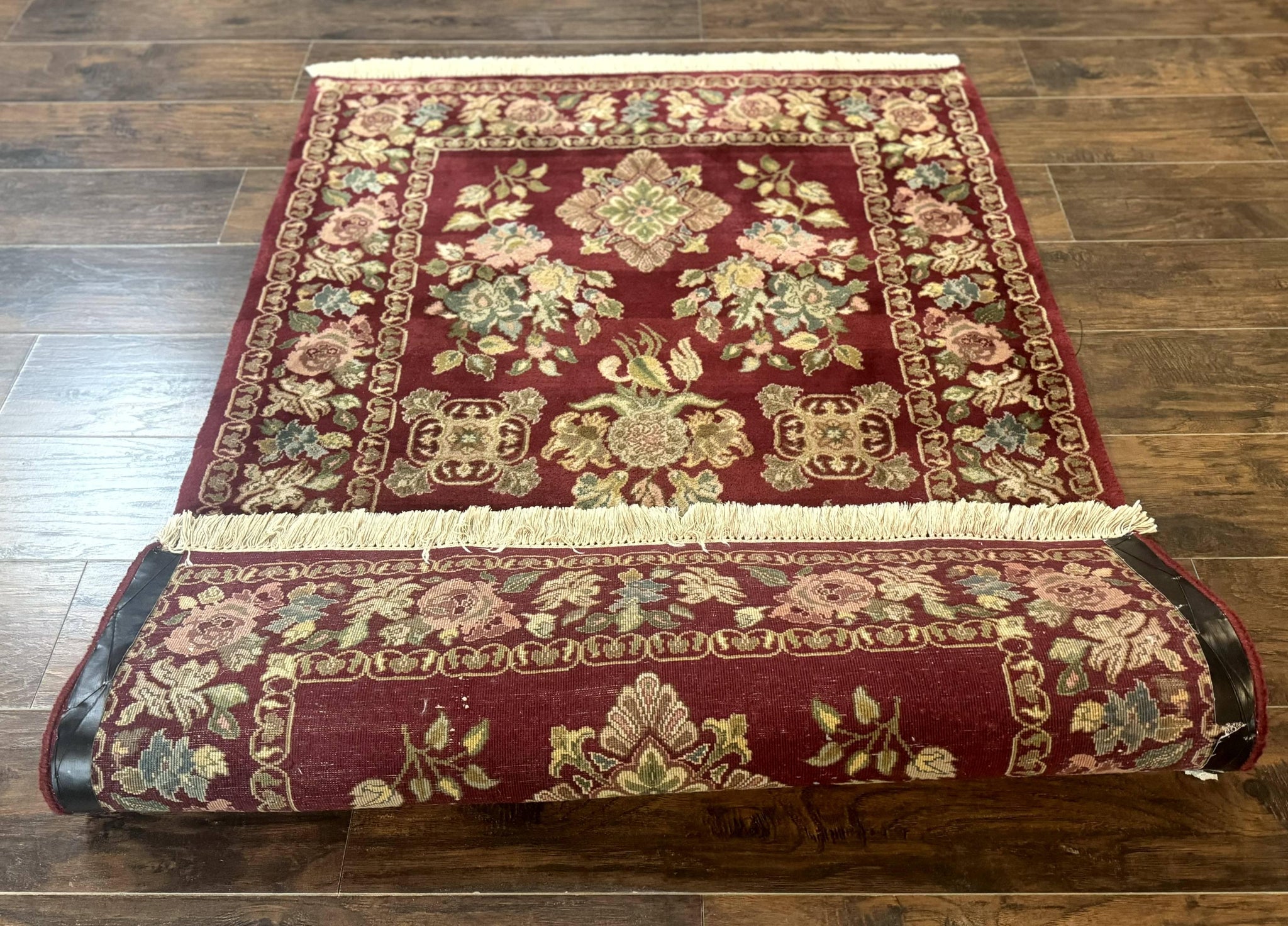 Indo Persian Kerman Rug 4x6, Burgundy, Floral