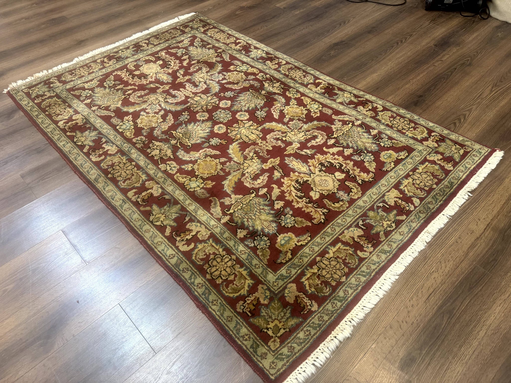 Indo Persian Mahal Rug 4x6, Floral Allover Pattern, Maroon