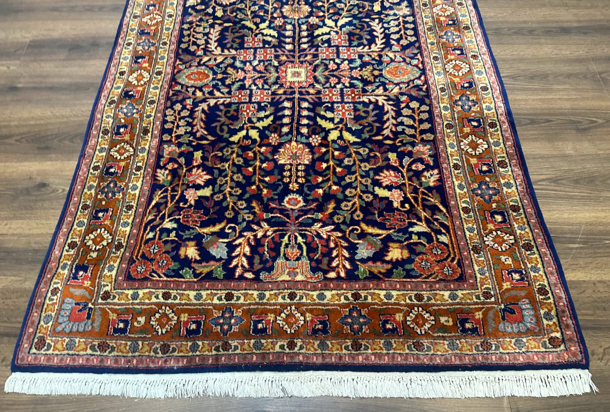 Indo Persian Sarouk Rug 4x6, Blue and Rust Red
