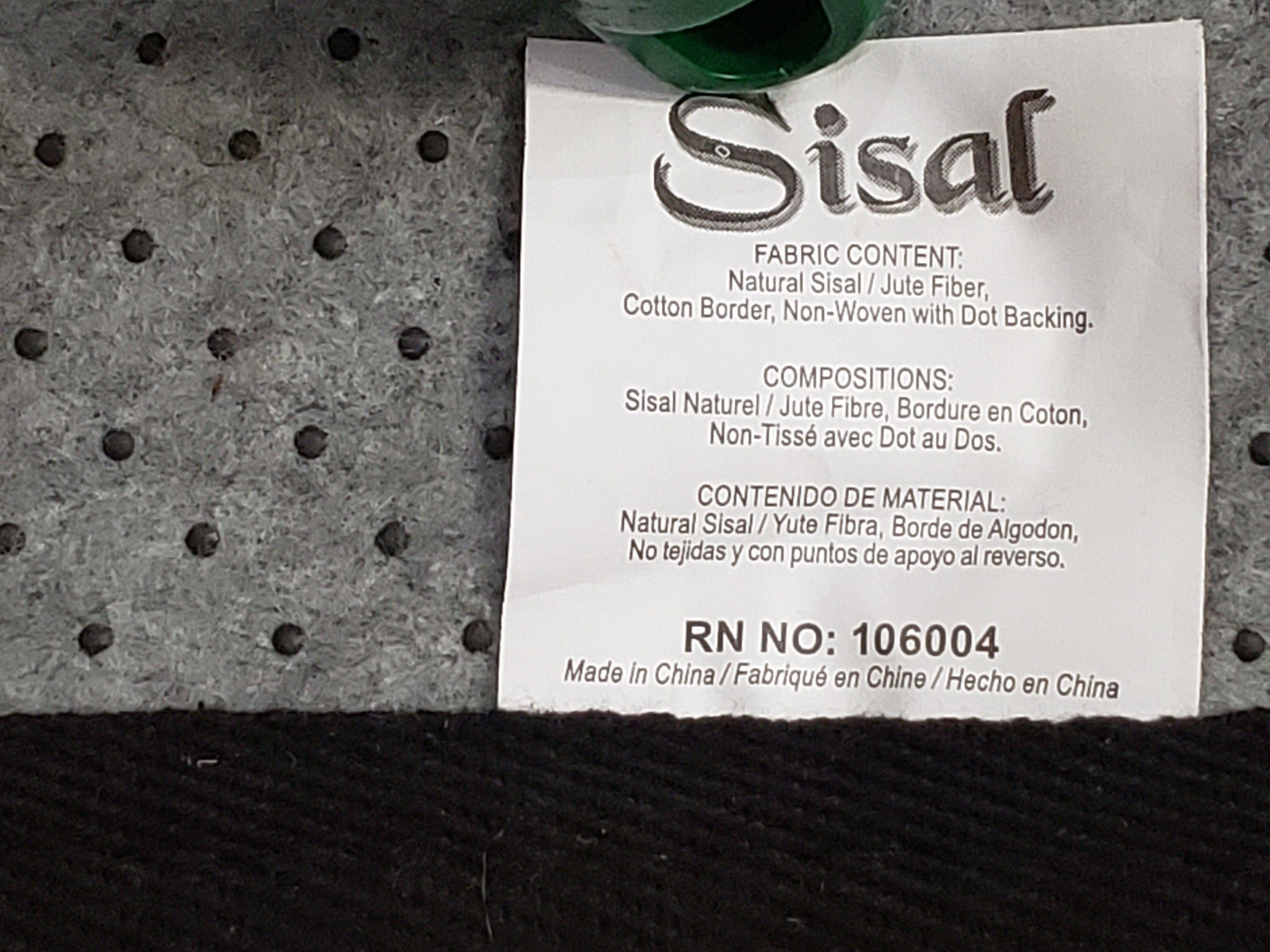 | Materials | Natural Sisal/Jute Fiber with Cotton Border |