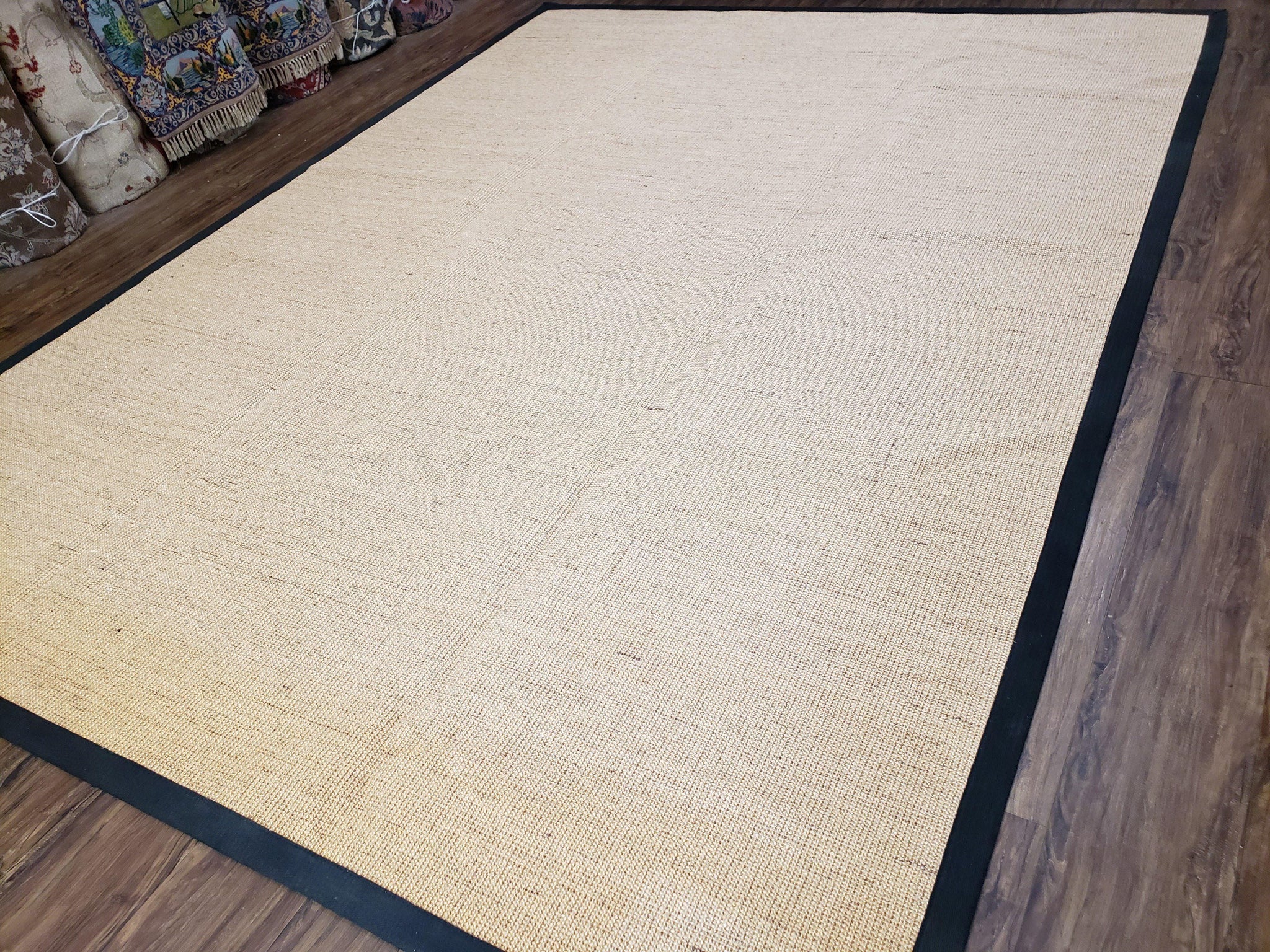 Jute Rug 8x10, Natural Jute Fiber Area Rug, Natural Sisal Area Rug with Black Border, 8x10 Carpet, Solid Jute Rug 8 x 10, Farmhouse Rug