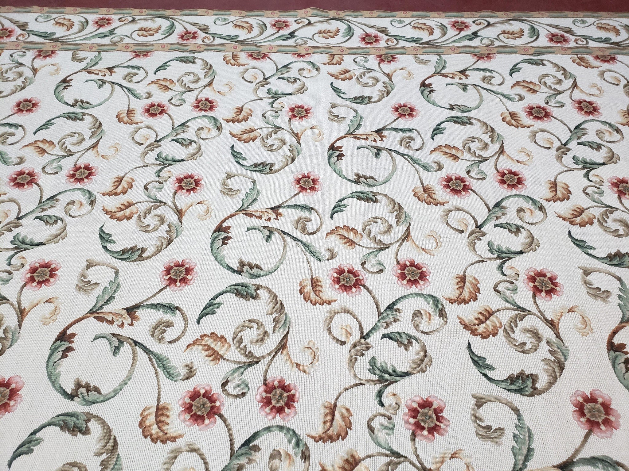 Needlepoint Rug 9x12, European Aubusson Design, Floral Allover Garden Pattern, New Needlepoint Area Rug, Ivory Rug, Hand Woven, Flatweave