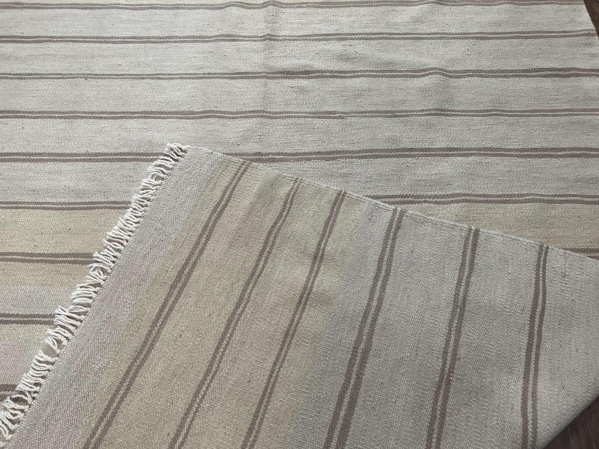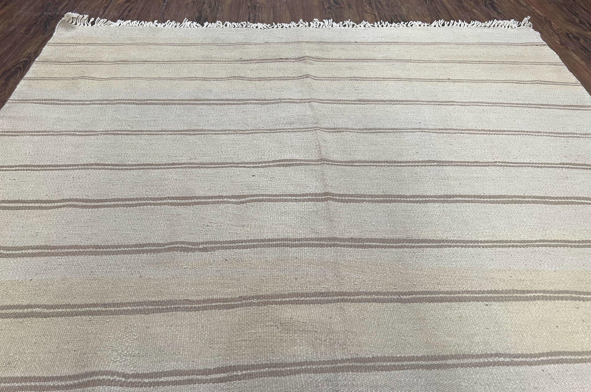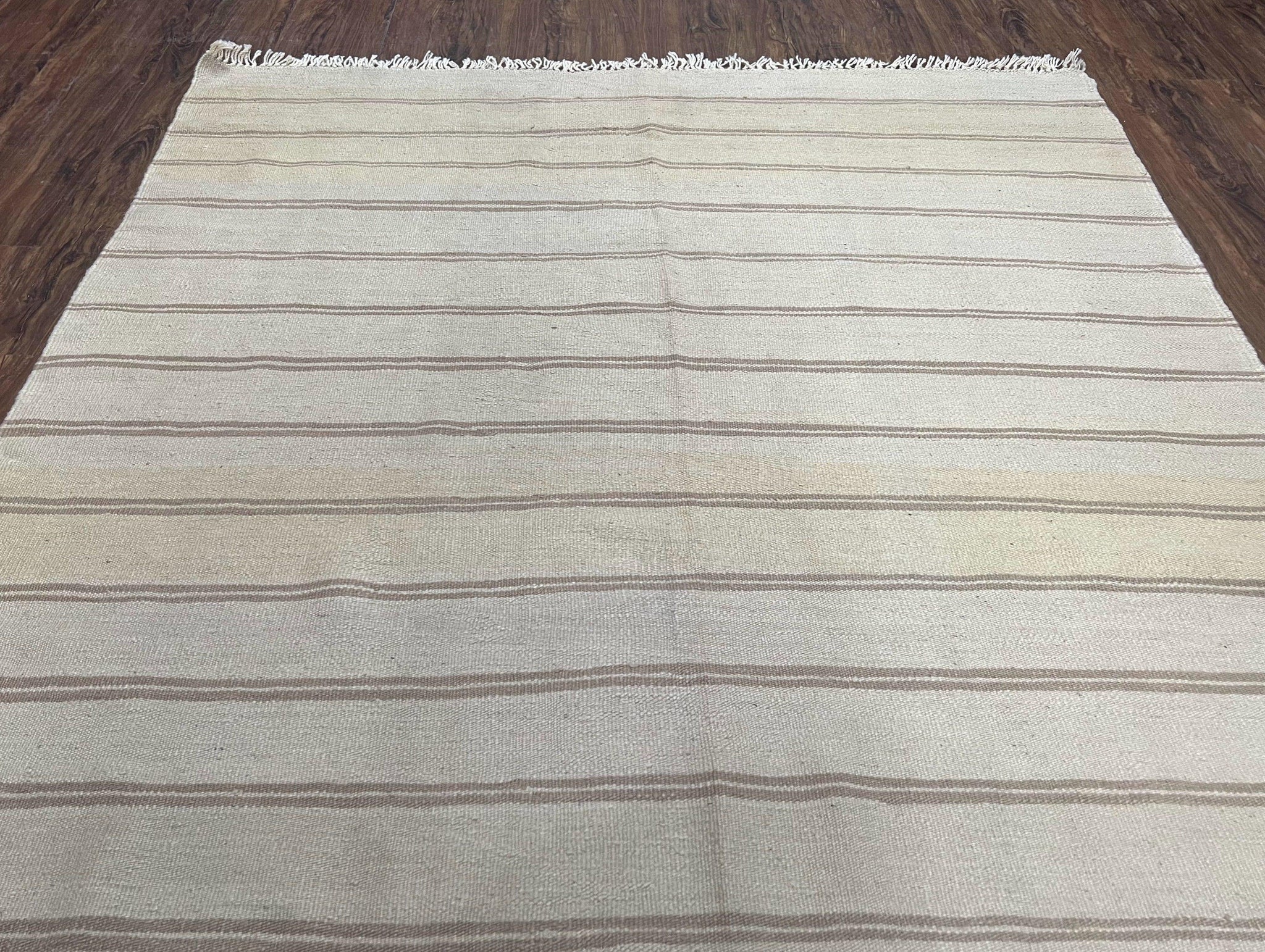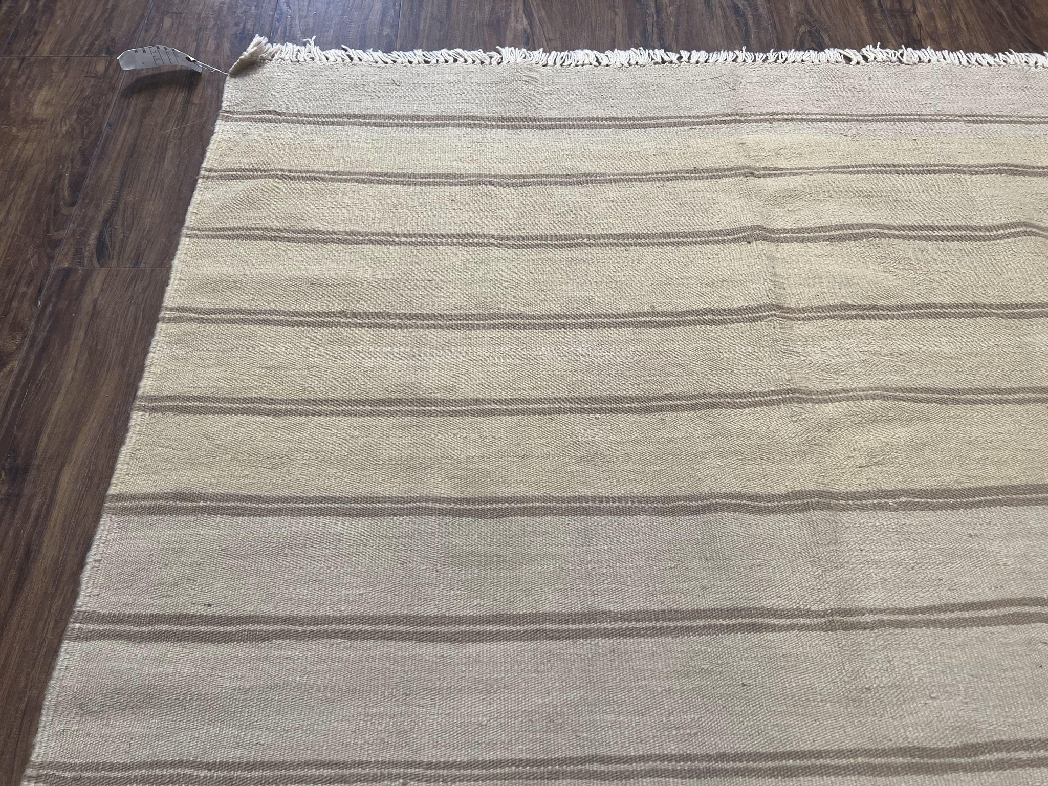 New Turkish Kilim Rug 5x8 Flatweave Carpet, Bohemian Rug, Contemporary Rug, Hand Woven, Wool Area Rug, Gray and Taupe, Striped Pattern