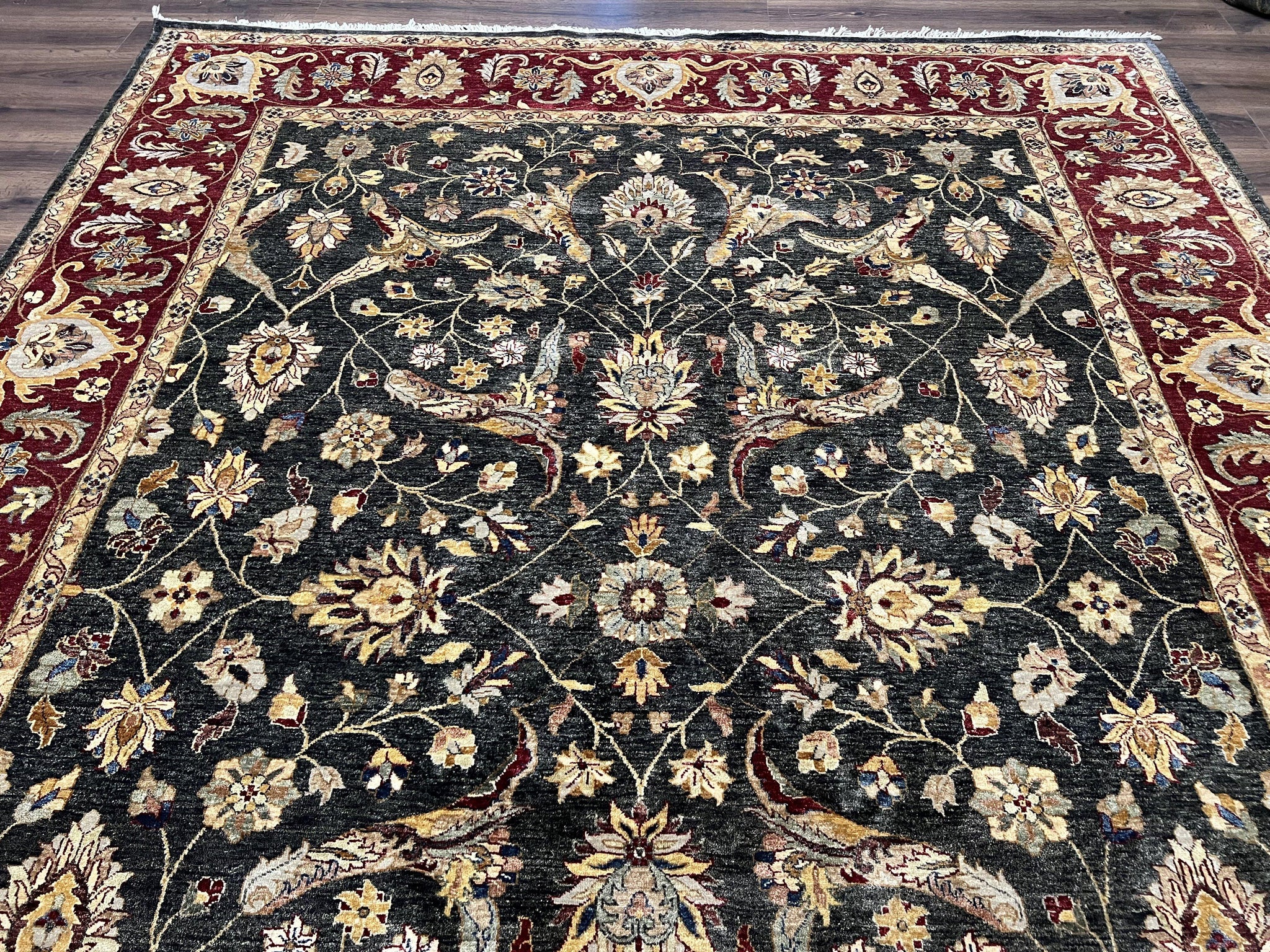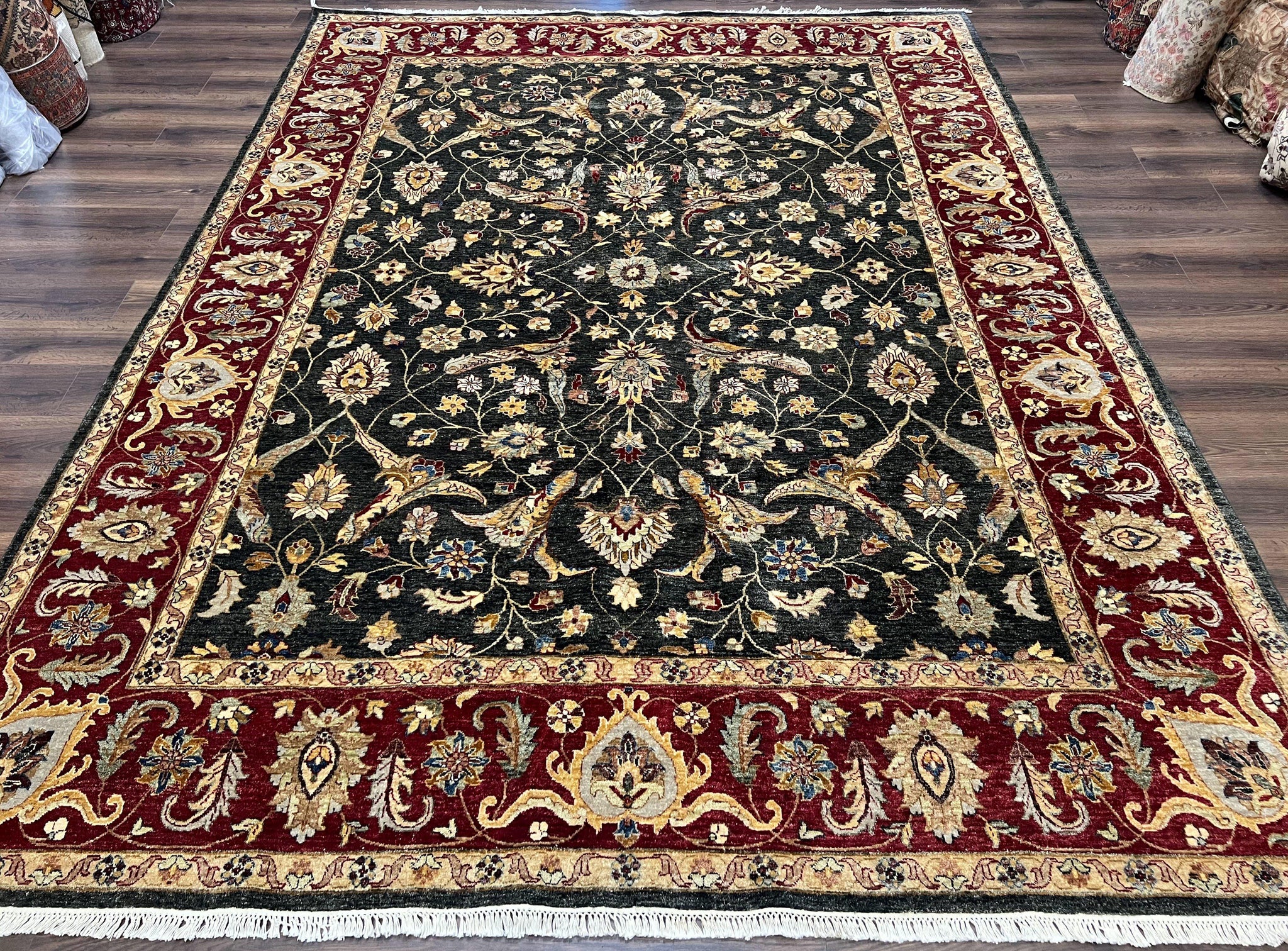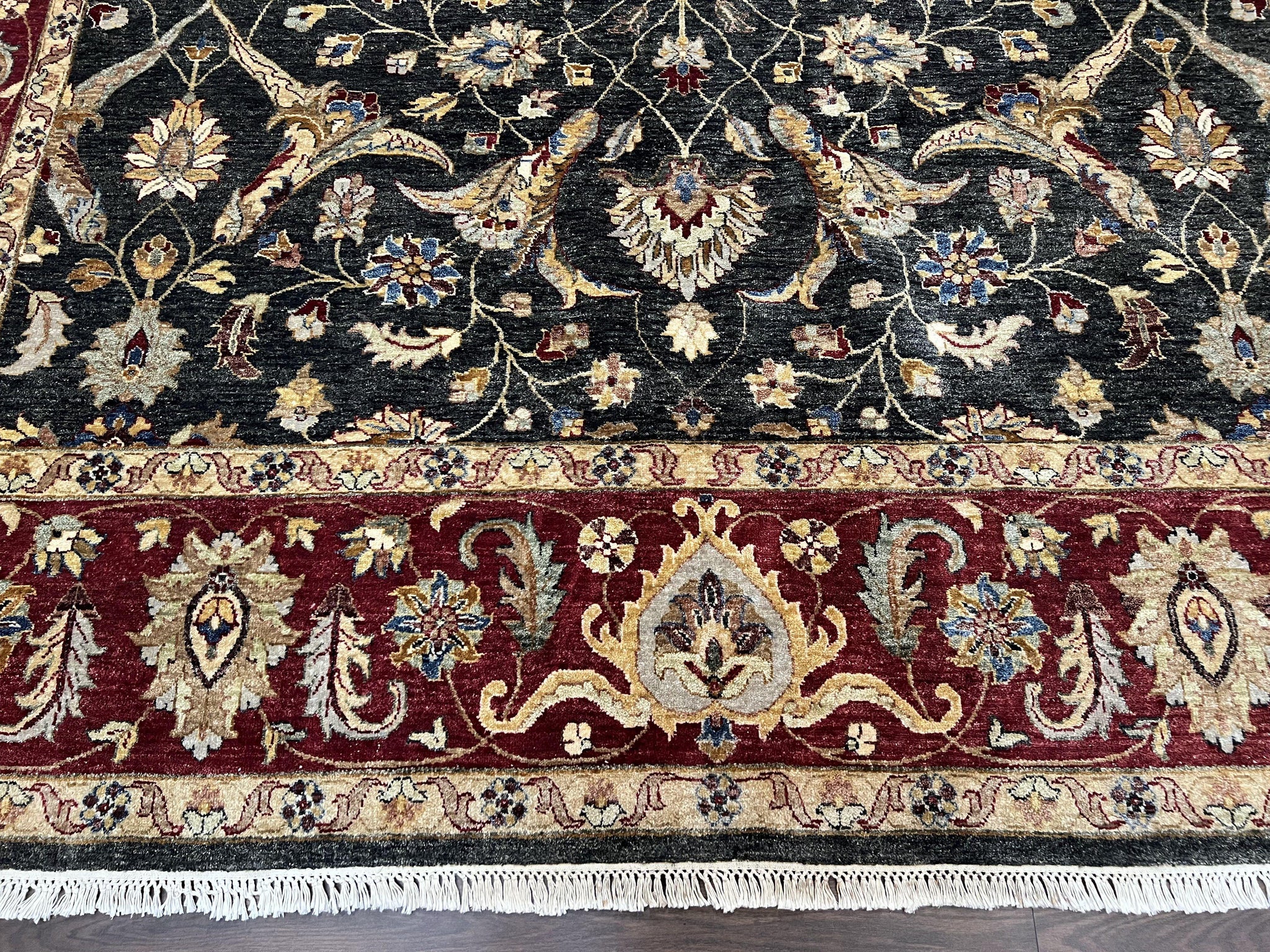 Pak Persian Mahal Rug 9x12, Allover Floral Pakistani Oriental Carpet 9 x 12, Wool Hand Knotted Area Rug, Dark Slate Gray-Black and Maroon