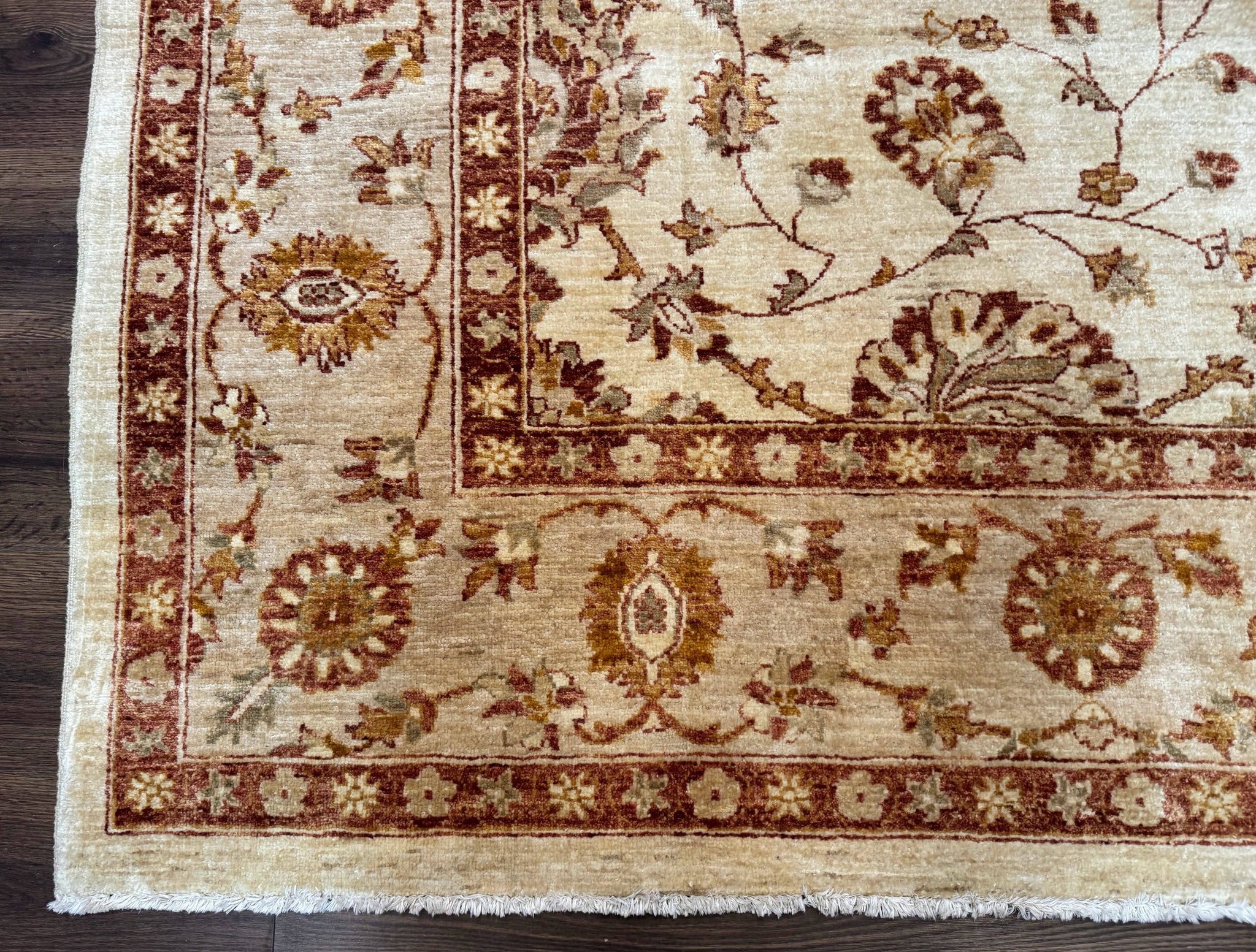 Pakistani Peshawar Rug 8x10, Pak Persian Traditional Oriental Carpet, Handmade, Wool, Allover Pattern