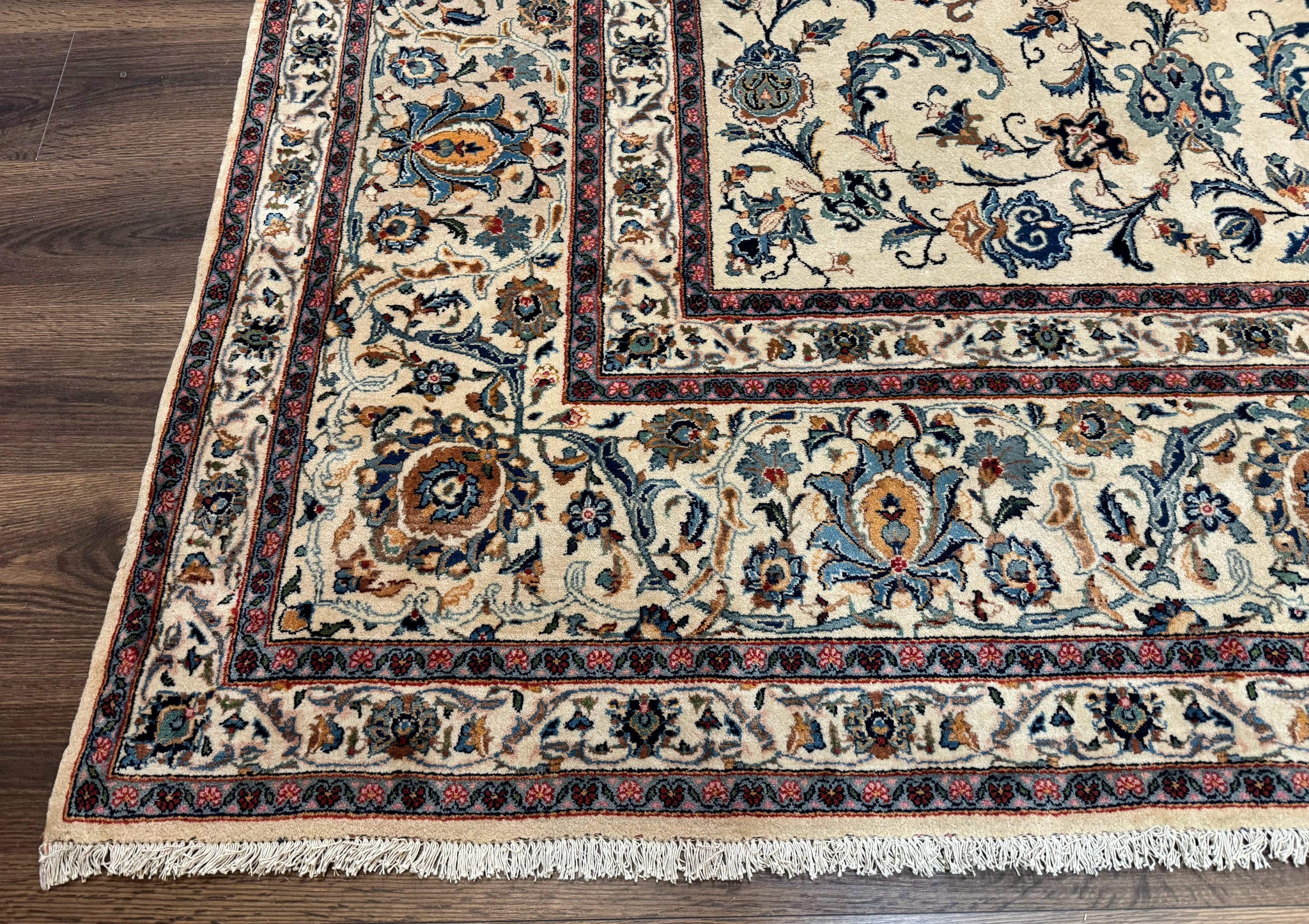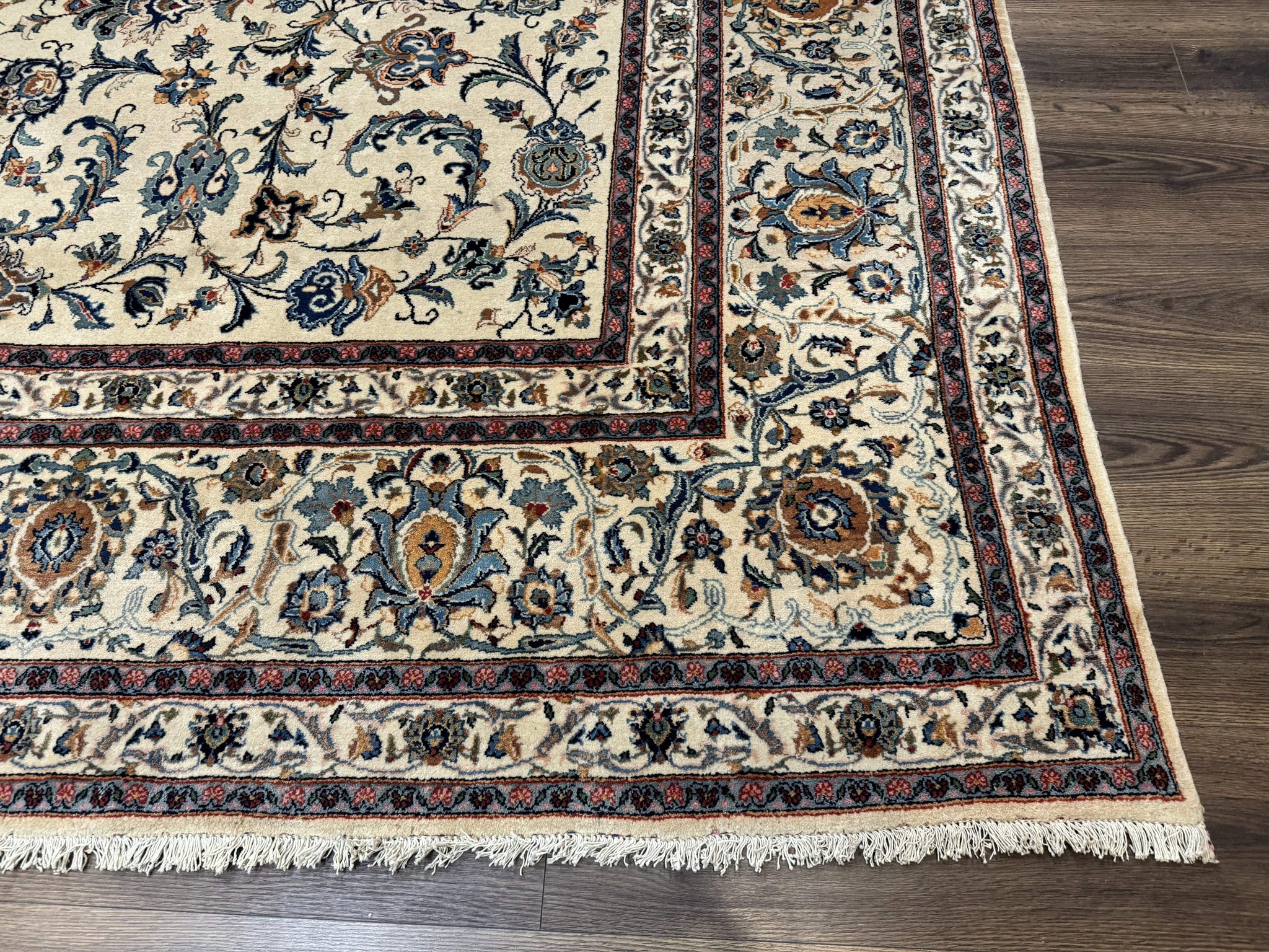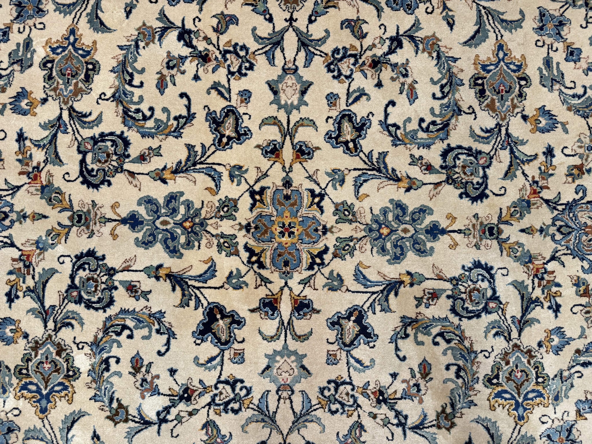 Persian Kashan Rug 10x14, Bone - Beige and Blue, Allover Pattern, Traditional Persian Carpet, Fine 260 KPSI