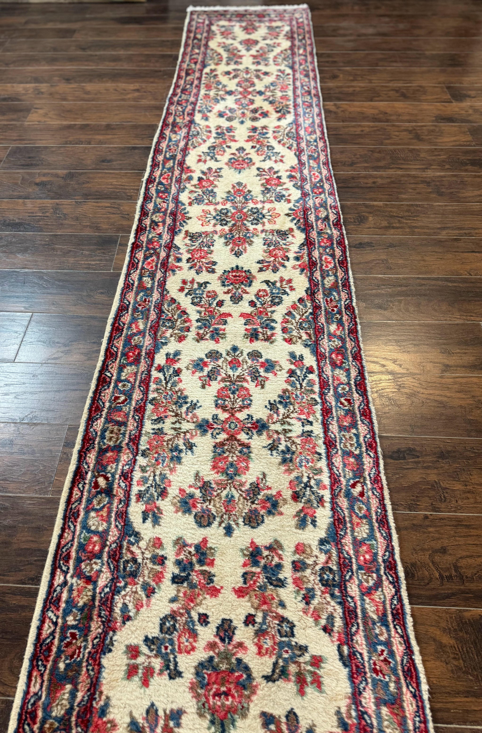 Persian Sarouk Runner Rug 2.4 x 21, Handmade Wool Floral Runner Rug for Hallway, 21ft Runner, Ivory