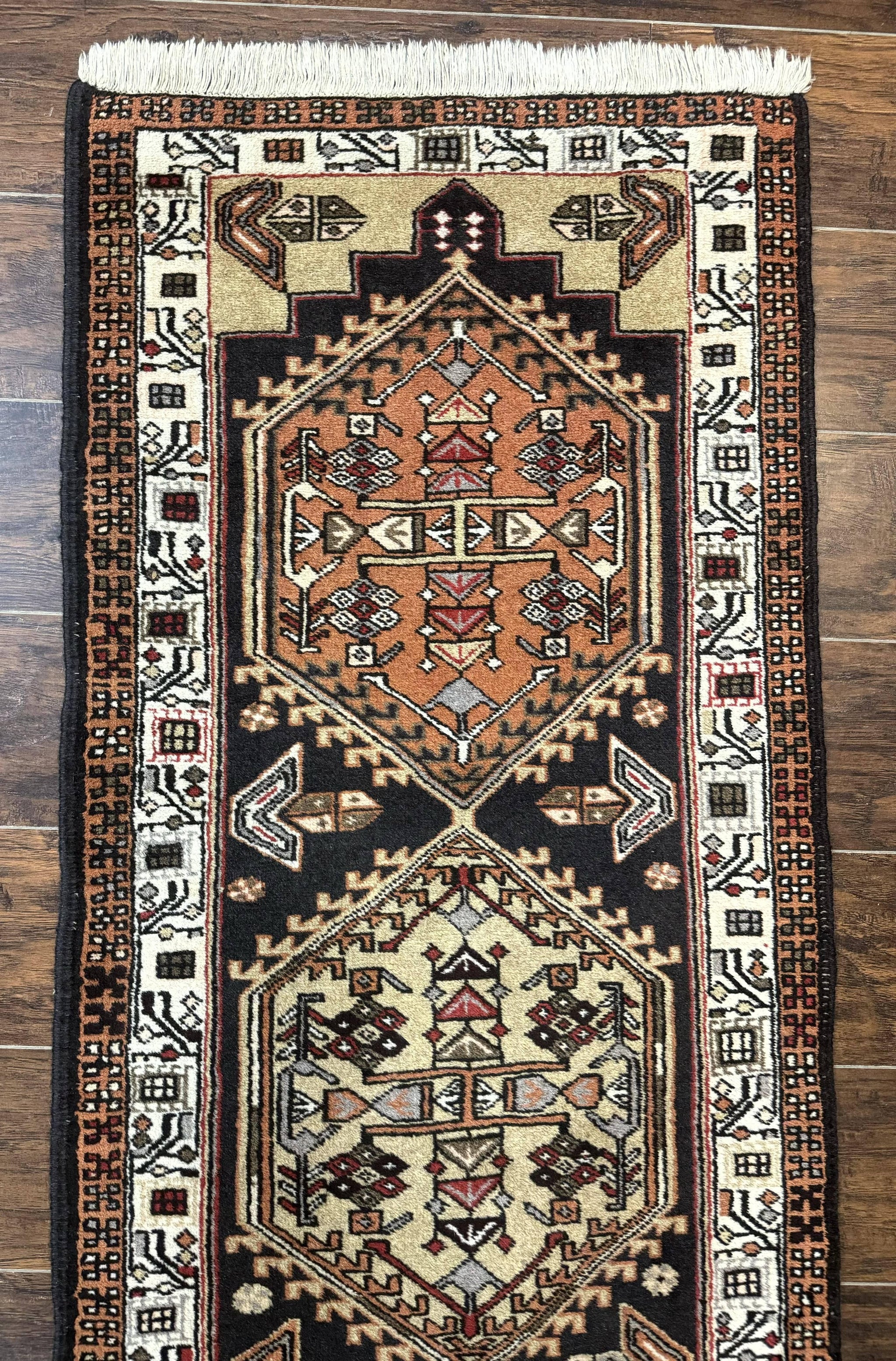 Persian Tribal Runner Rug 2.4 x 9.4, Geometric Medallions, Sarab Runner