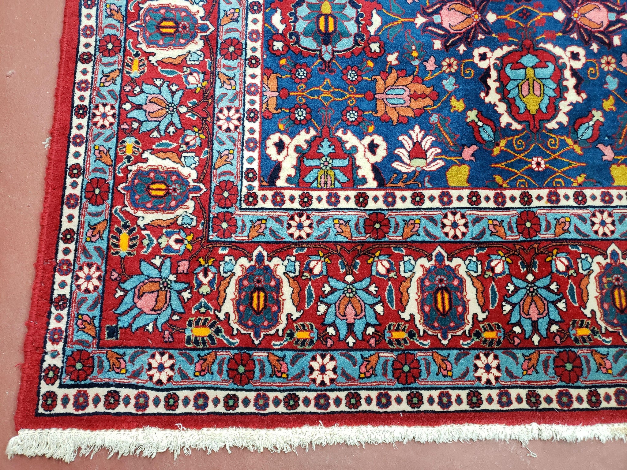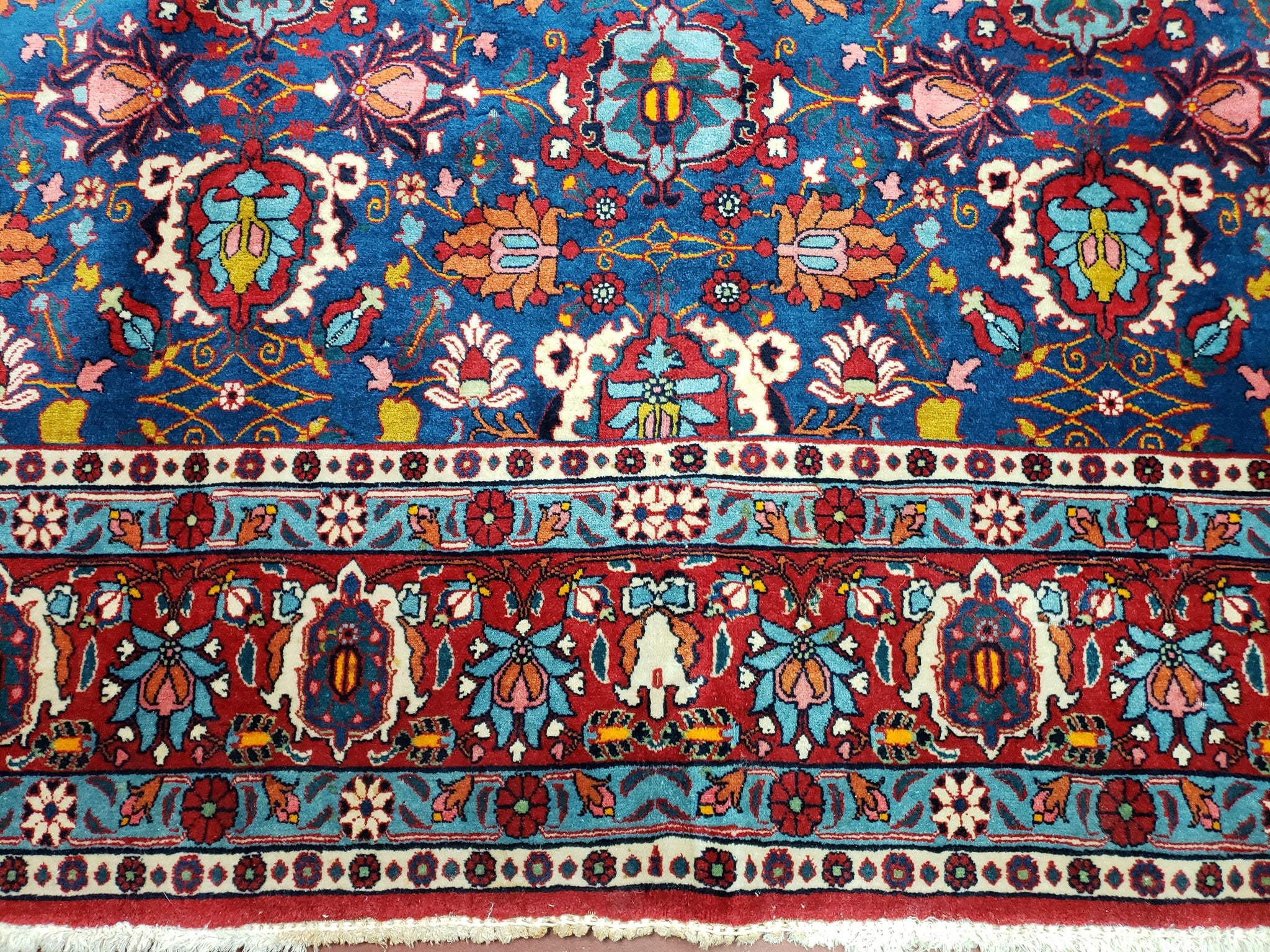 Rare Antique Persian Veramin Carpet, Mina-Khani Pattern, Blue, Red, Ivory, 7x11 ft, Hand-Knotted, Wool