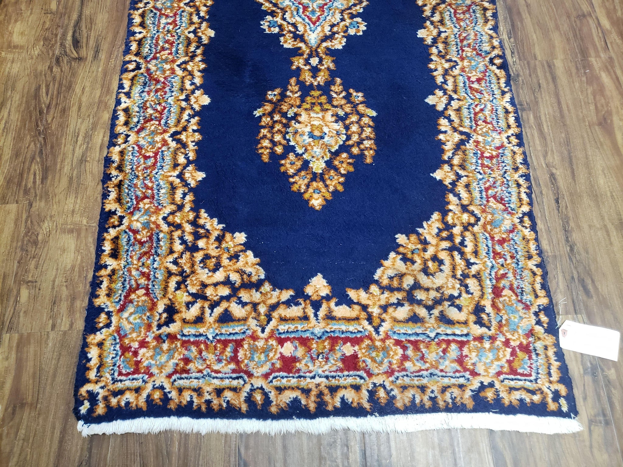 Semi Anique Dark Blue Persian Kerman Runner, 2'7" x 13'5"