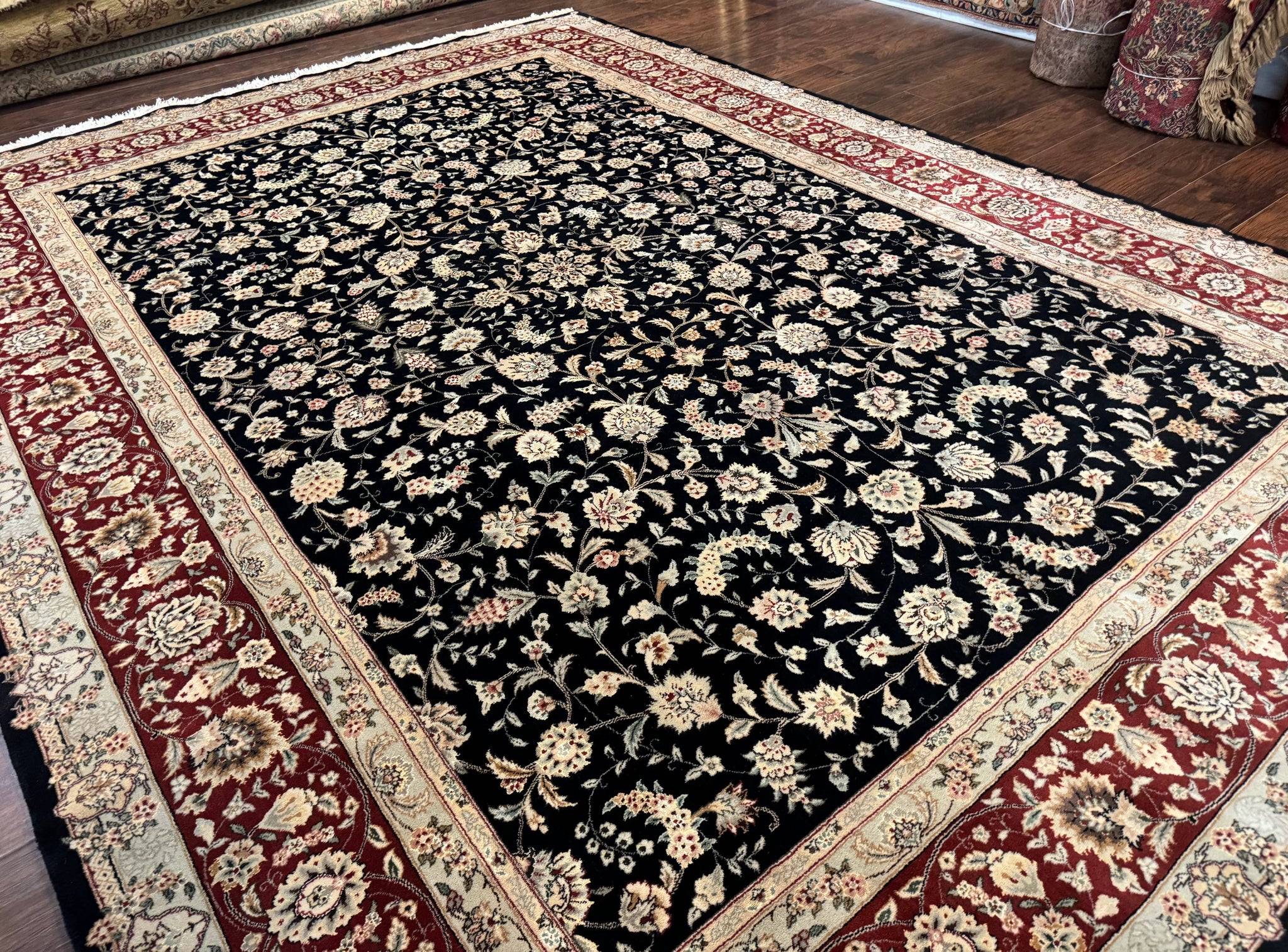 Sino Persian Rug 9x12, Fine Elegant Oriental Carpet 200 KPSI, Black and Dark Red, Allover Floral
