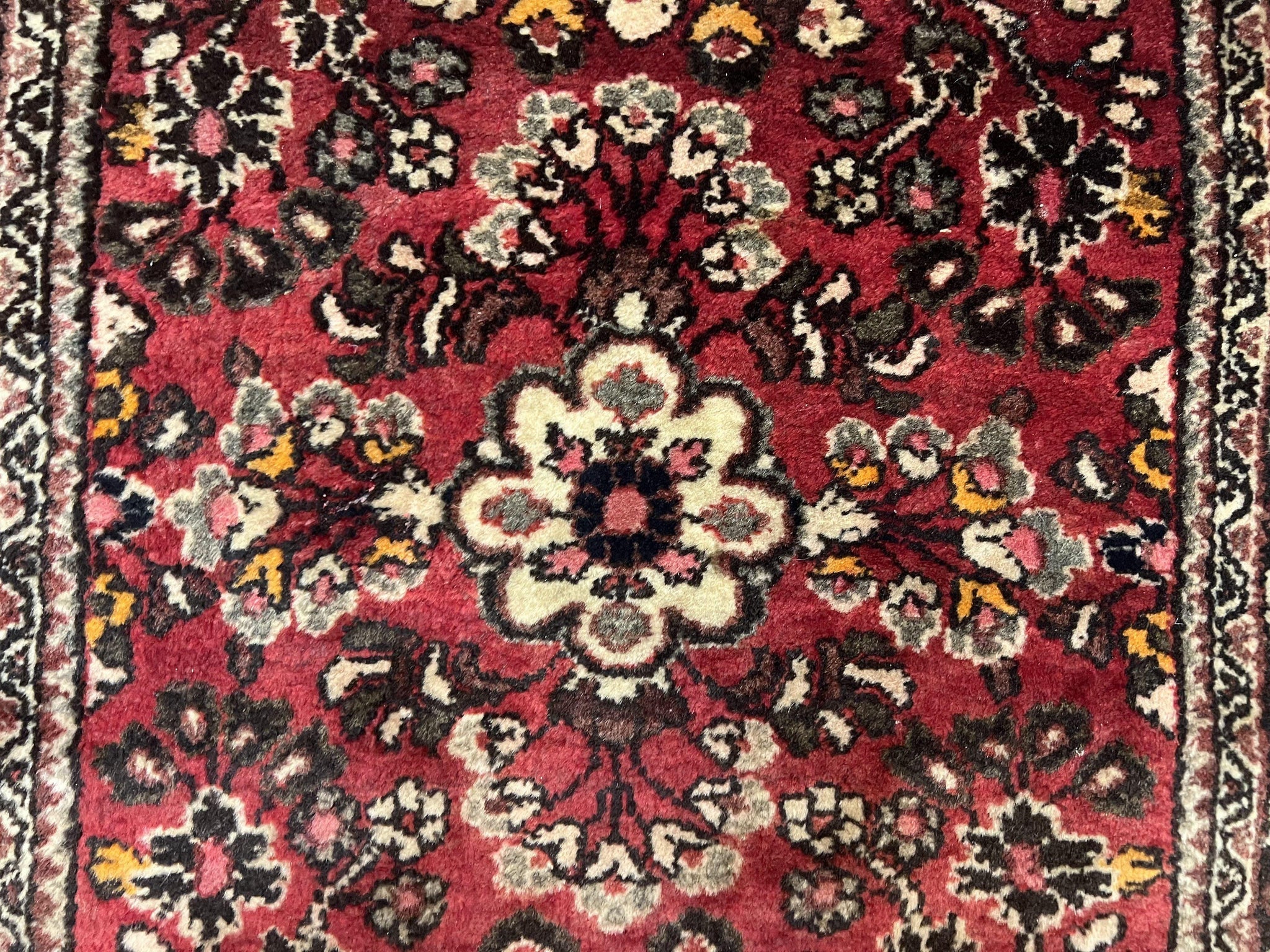 Small Persian Sarouk Rug 2x4 ft, Allover Floral Pattern, Red Black Cream, Hand Knotted Wool Traditional Oriental Carpet, Antique Persian Rug 2 x 4