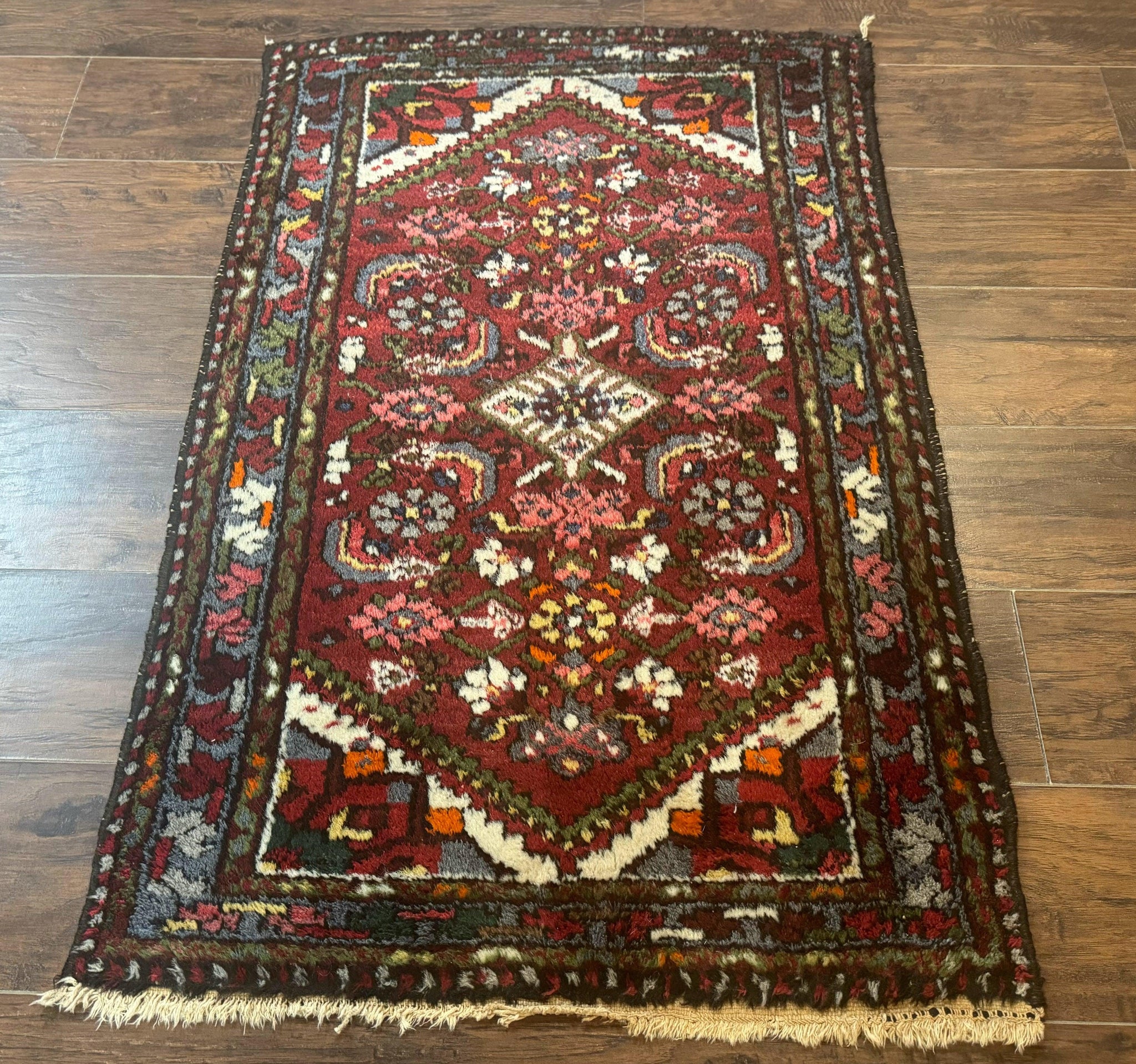 Small Red Persian Tribal Rug 2.6 x 4, Wool Rug, Persian Hamadan Rug