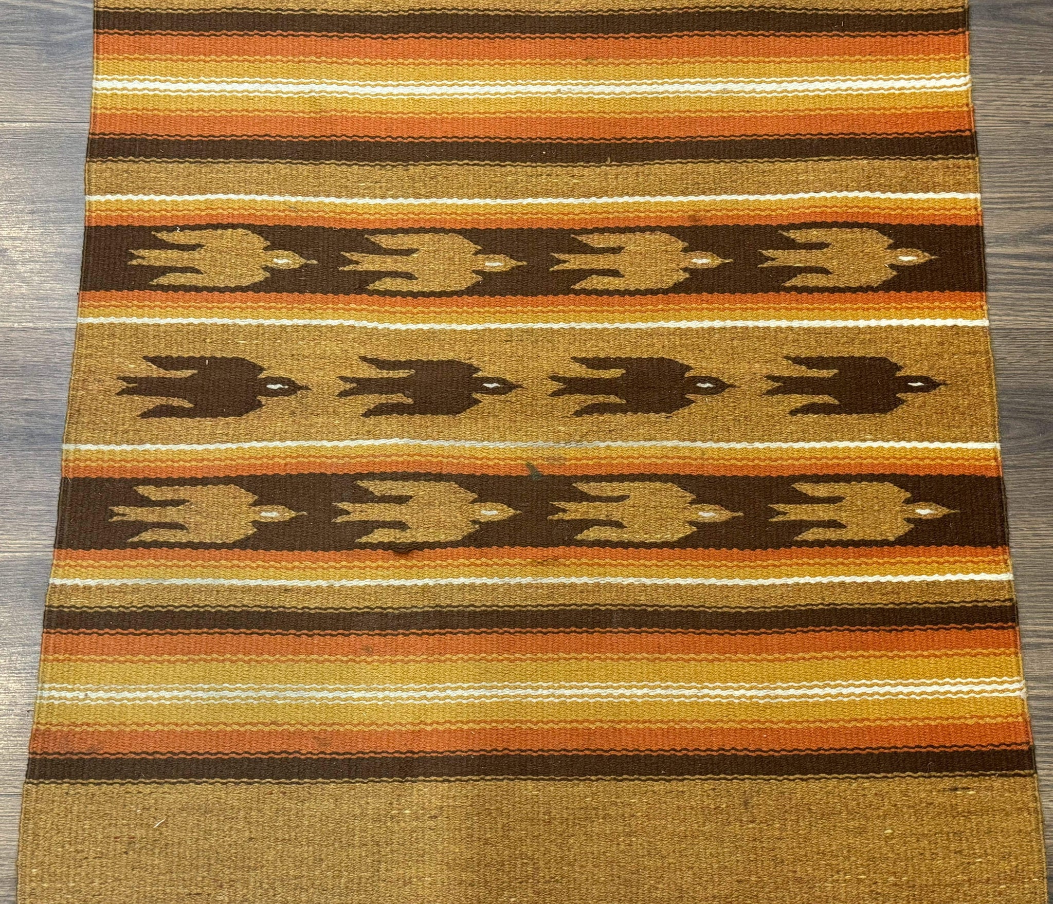 South American Rug Blanket 2.7 x 5.6, Wool, Handmade, Navajo Design, Orange Brown