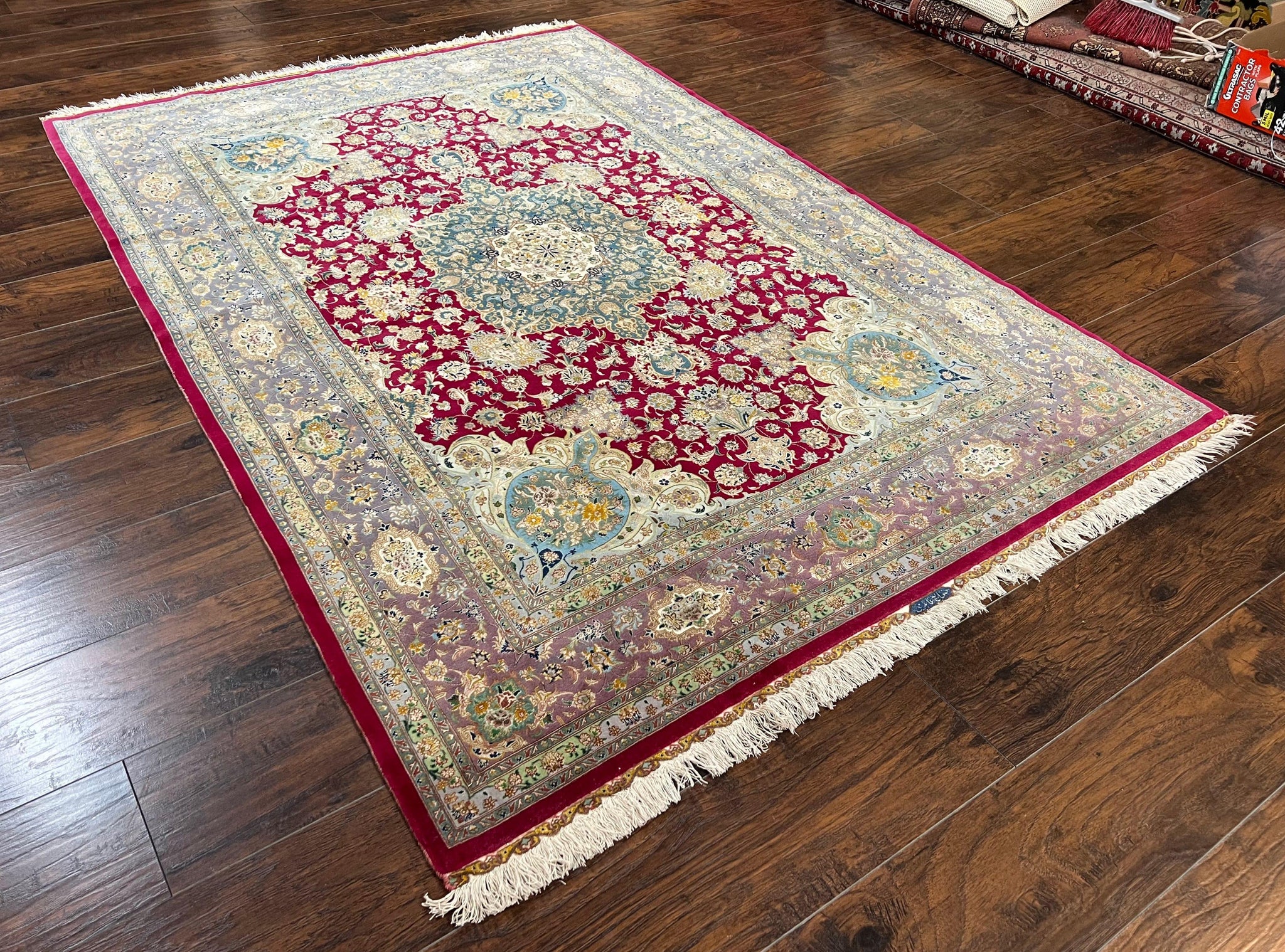 Stunning Persian Tabriz Rug 5x7, Signed by Masterweaver, Maroon, Floral Medallion, Ultra Fine 70 Raj 625 KPSI, Kork Wool Silk Foundation, Handmade