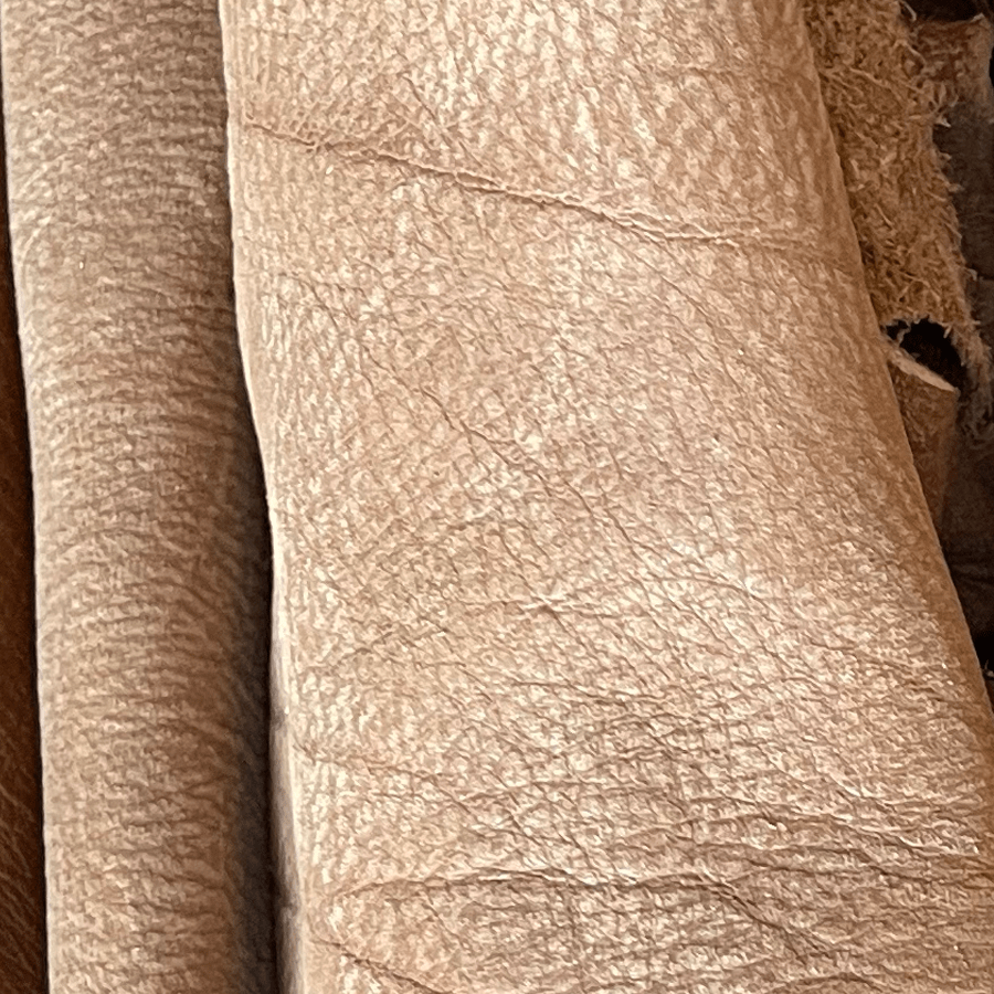 We only use 2-3 oz genuine calf hides that are not milled. This means the leather is thick and sturdy without the machine shaving or machine compression typical of most "upholstery leather" found at commercial manufacturers. You can see this by looking inside and feeling the rough, natural suede texture of your piece.