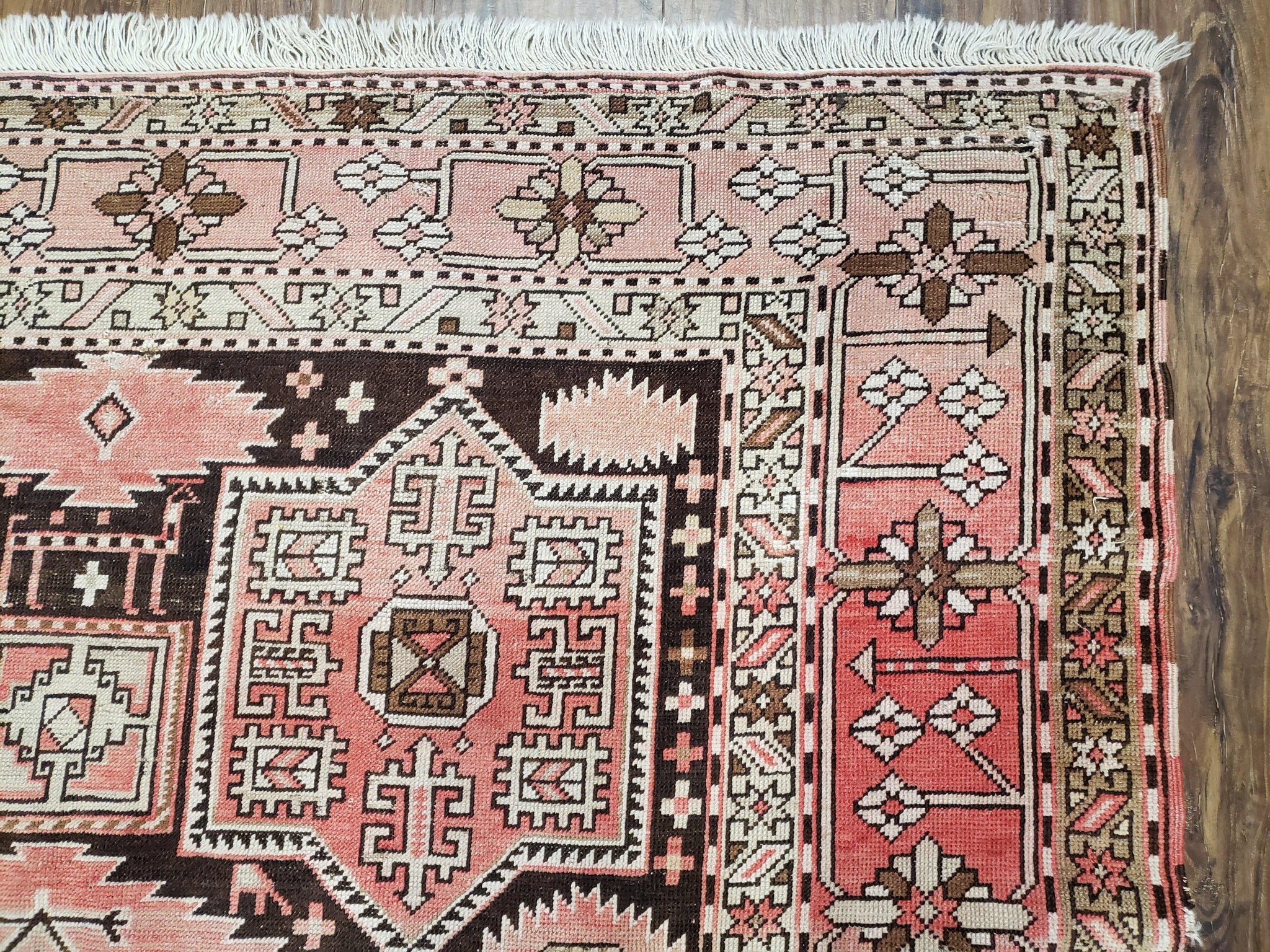 Antique Caucasian Rug 5' 5" x 10' 9", Shirvan Carpet, Wide Oriental Corridor Runner, Quality Handmade Hand-Knotted Wool Rug, Pale Pink Black