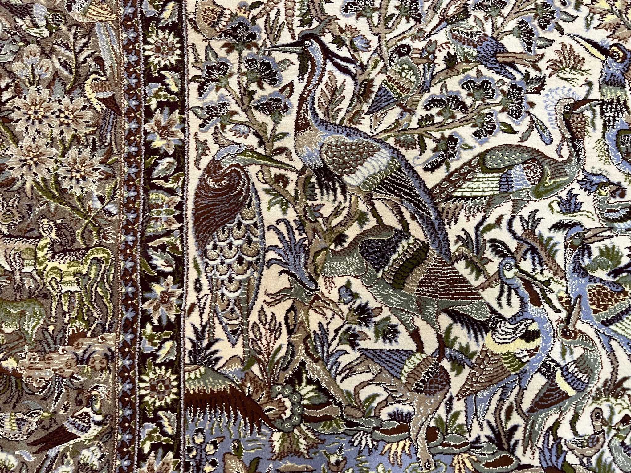 Keywords: Persian Isfahan Rug, Tree of Life Rug, Vintage Rug, Hand-Knotted Rug, Kork Wool Rug, Silk Foundation, Cream Rug, Animal Pictorial Rug