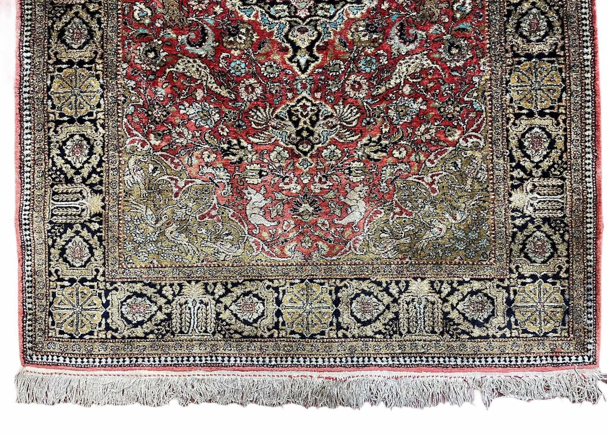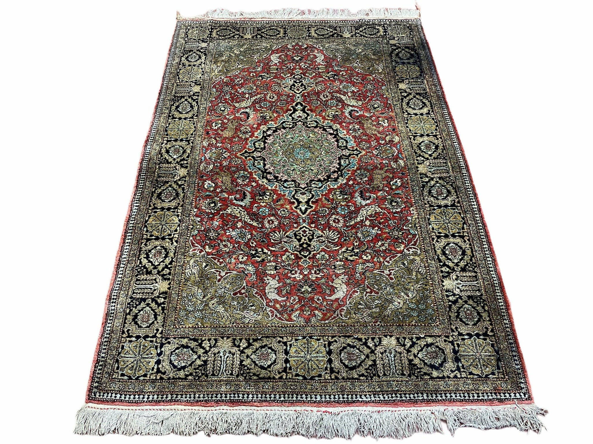 Persian Qum Silk Rug 3.8 x 5.6, Silk on Silk, Animal Pictorials, Fine 330 KPSI