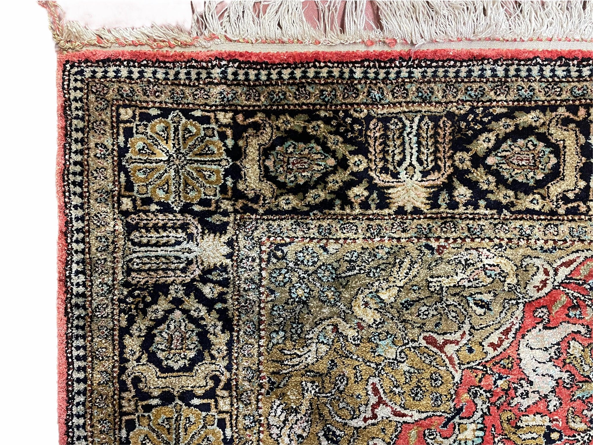 A Beautiful Vintage Handmade Hand Knotted Silk Persian Area Rug. A great way to transform any space.
